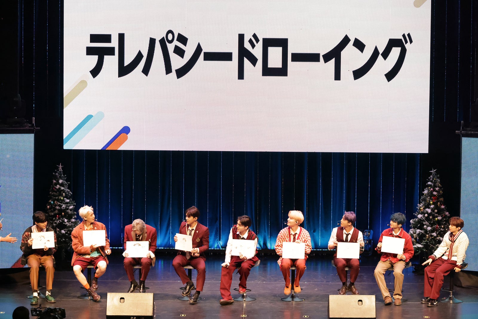 2つ目のゲームは、1人目が描いた絵のお題を9人目が当てるテレパシードローイング。ヨジョンが「今一番食べたいものは?」のお題に上手に寿司を描いたが、2人目のダイゴから雲行きが怪しくなり、絵はきのこのような形に。チャンは「え?」と描いて用意していたスケッチブックを見せて笑わせるなど盛り上がったが、最終的に正解には至らず、次のお題はダイゴが回答することに。「TO1メンバーの中で推しメンバーを選ぶなら?」というお題にヨジョンは鋭い鼻の横顔を描いたが、どんどんと絵が崩壊していき、最初の面影はなくなってしまった。ヨジョンが正解はレンタだったと明かすと観客もメンバーも驚き、笑いの渦に包まれた。