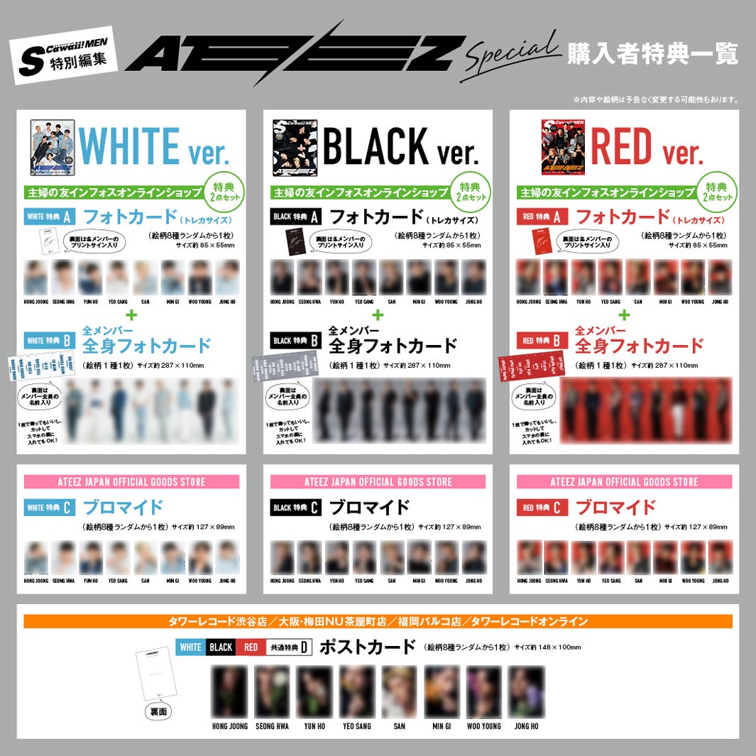 韓国のボーイズグループ・ATEEZ(エイティーズ)が、日本の雑誌初表紙を飾る3月2日発売の「S Cawaii! MEN特別編集 ATEEZ Special」より、表紙3種類が解禁された。