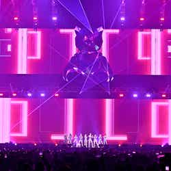 そして日本デビュータイトル曲「Wing Wing」、「Daisy」と披露し、その中でも一際盛り上がりを見せたのが、ヒット曲「WA DA DA」のリミックスとなる「WA DA DA(Japanese ver.)~IMLAY Remix~」だ。このイベント出演のために準備したという言葉のとおり、イントロから観客のボルテージを更に高め会場全体に熱い歓声が響き渡った。
