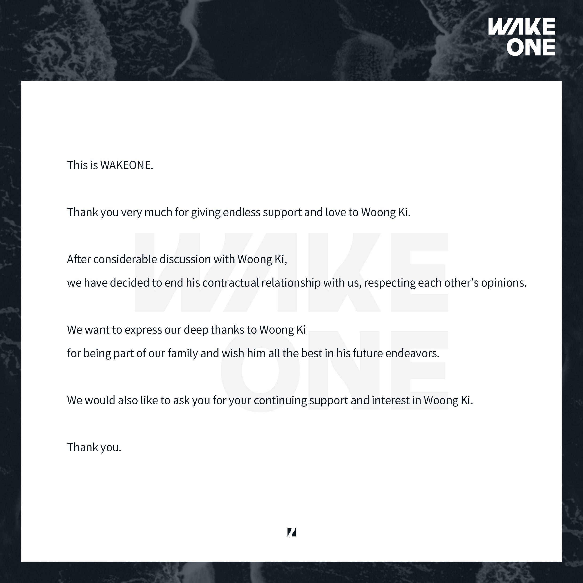 投稿では「チャウンギ専属契約終了の案内」とし、ハングルと英語で記された書面をアップ。「チャ・ウンギに惜しみない応援と愛を送ってくださるファンの皆様に、心より感謝申し上げます」と感謝の言葉とともに「当社はチャ・ウンギと深い議論の末、互いの意見を尊重し、専属契約を終了することにしました」とウンギの退所を報告した。続けて「所属アーティストとして共に歩んでくれたチャ・ウンギに心から感謝の言葉を伝え、これからの活動を応援します」とした上で「ウンギへの変わらない関心と支援をお願いします」と結んでいる。