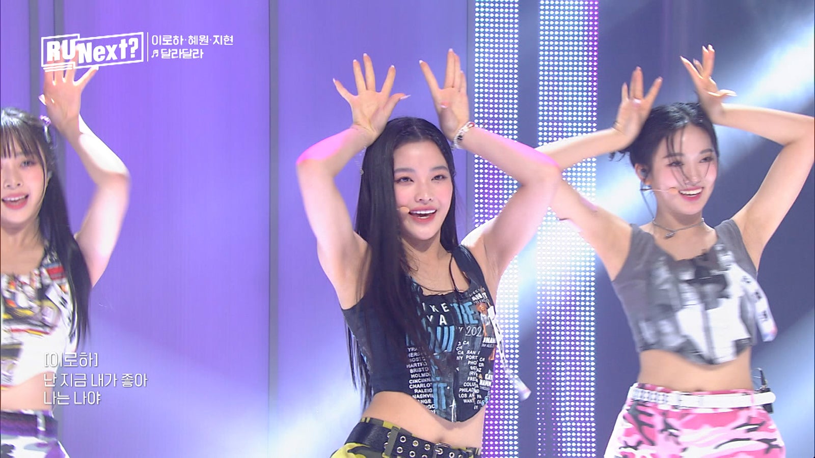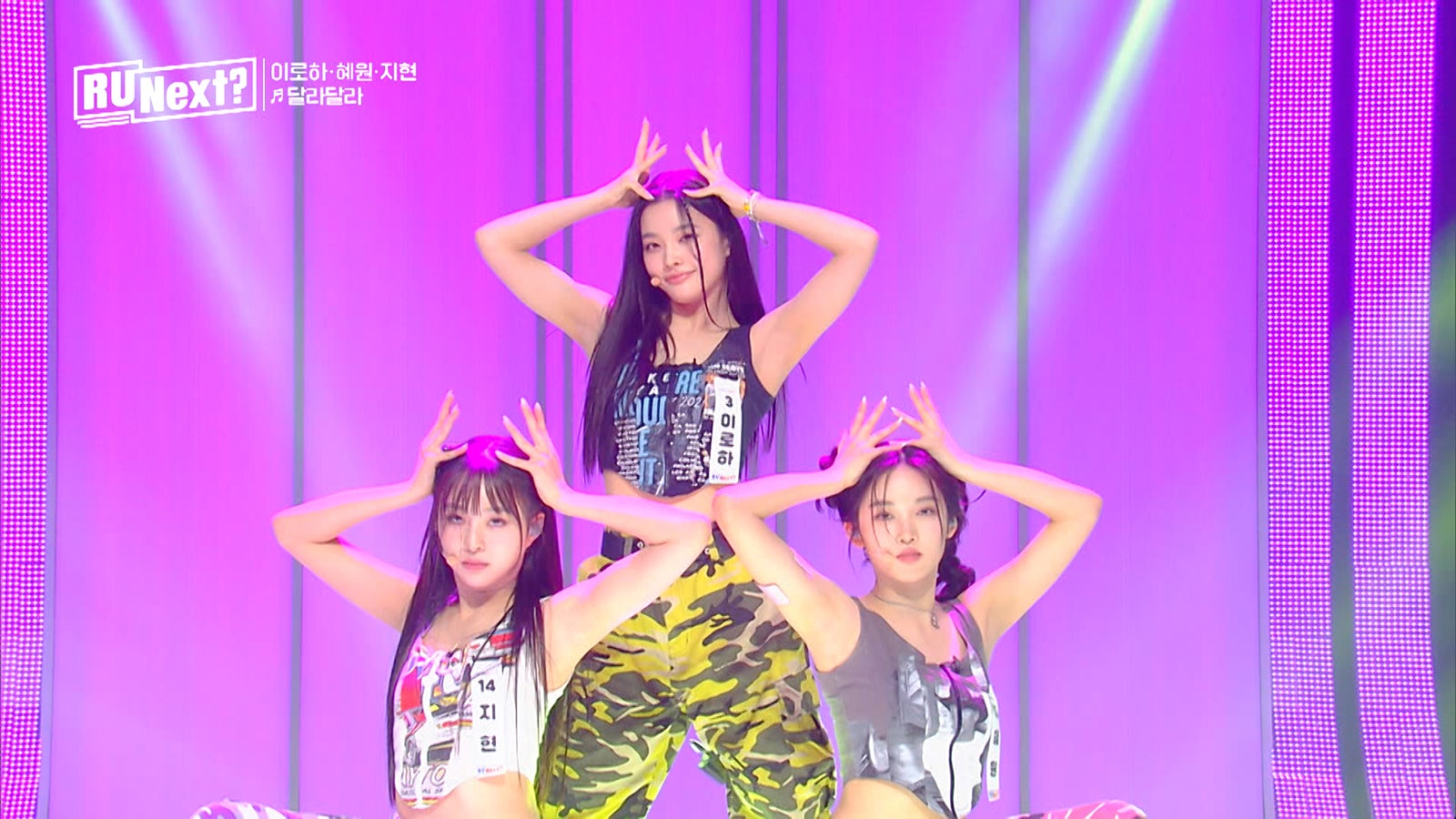 5人組ガールズグループ・ITZYのデビュー曲「DALLA DALLA」を披露するユニットでは、イロハチームとして日本人のイロハと、韓国人のへウォンとジヒョンの3人が登場。このユニットは、練習生たちが選んだ“ダンスの強いチーム”と紹介され、イロハが3歳の時にHIPHOPを踊る映像が流れると、コーチ陣も「あれが3歳?!」「うまい!」と思わず口を大きく開いて驚いた。そんな期待が高まっているなか、緊張を感じさせないパフォーマンスを繰り広げていく3人でしたが、途中でヘウォンの髪型が崩れてしまったり、イロハのマイクが外れそうになってしまうなどハプニングが発生。しかしその後もダイナミックなダンスを披露し、最後までやり遂げる。