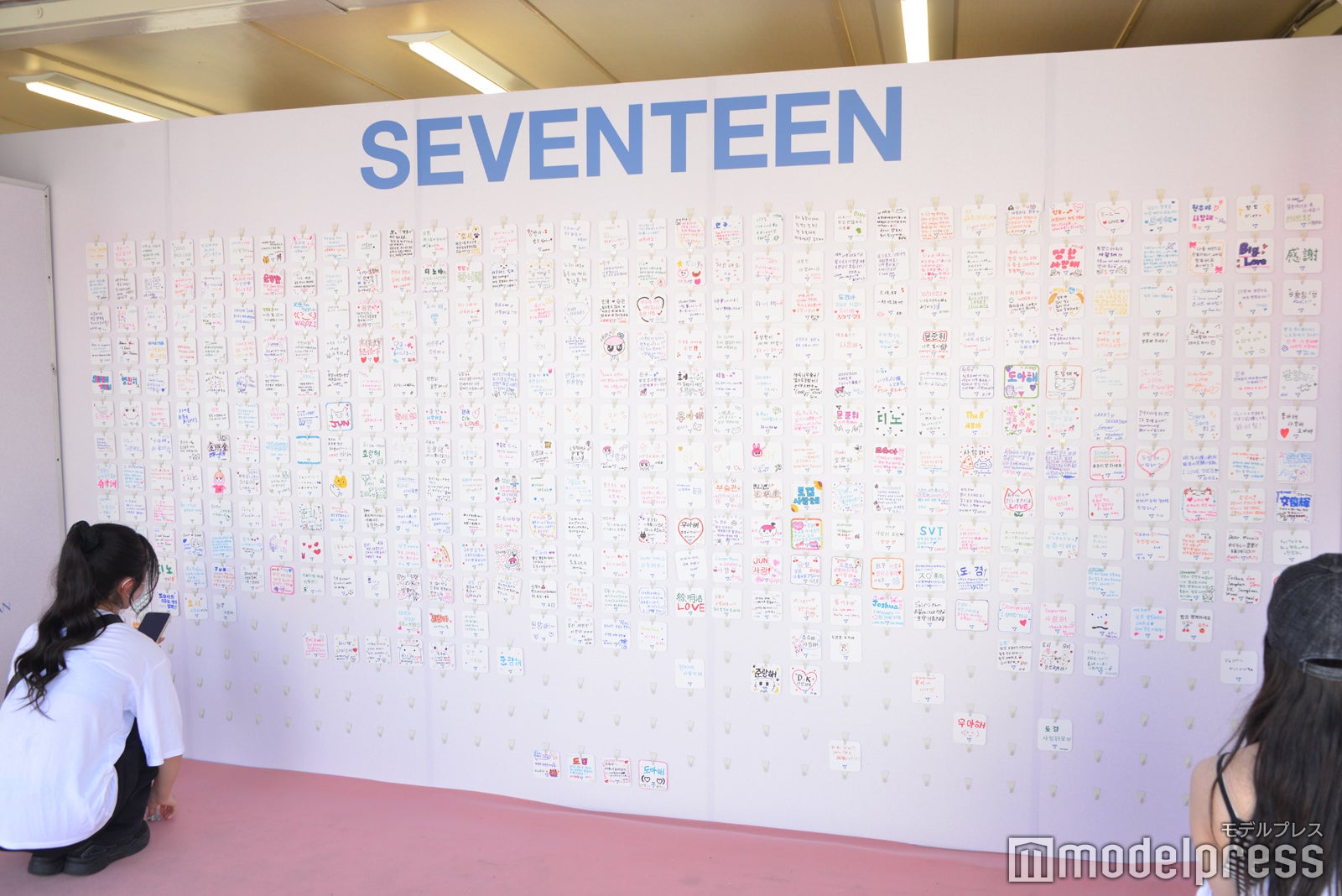 18日~23日、HYBE LABELSのアーティストブースに、&TEAM、TOMORROW X TOGETHER、ENHYPENに続き、入れ替わり第4弾アーティストとしてSEVENTEENブースが登場。パネル展示やメッセージ企画を楽しめるほか、アーティスト本人たちがこだわりを持ってセレクトしたコラボメニューを販売。さらに、韓国・ソウルで人気のセルフ写真館「Photomatic」が設置され、アーティストフレームでの記念撮影を楽しめる、盛りだくさんの内容となっていた。