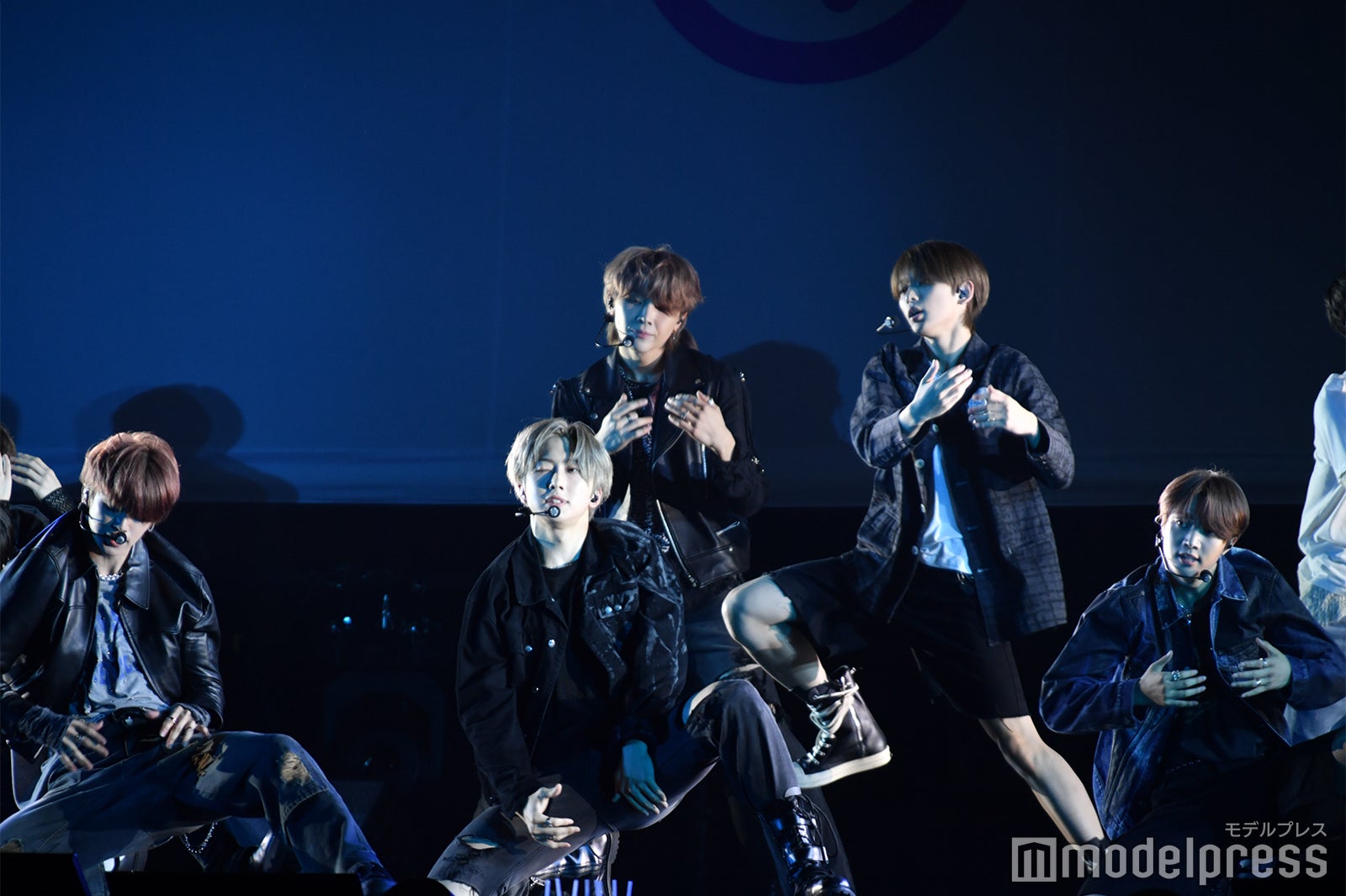 そしてそれぞれ挨拶をすると、結成からデビューを振り返るパフォーマンスステージに。&TEAMが結成される前より、デビューメンバーとして『&AUDITION -The Howling-』に参加していたEJ、K、NICHOLAS、TAKIによる『黒の月: 灰色の都市』のオリジナルサウンドトラック「W.O.L.F. (Win Or Lose Fight)」。そしてそこに5人が合流し、『&AUDITION -The Howling-』のシグナルソング「The Final Countdown」、Debut EP「Under the skin」と、まさに&TEAMのこれまでの軌跡を楽曲で表していた。