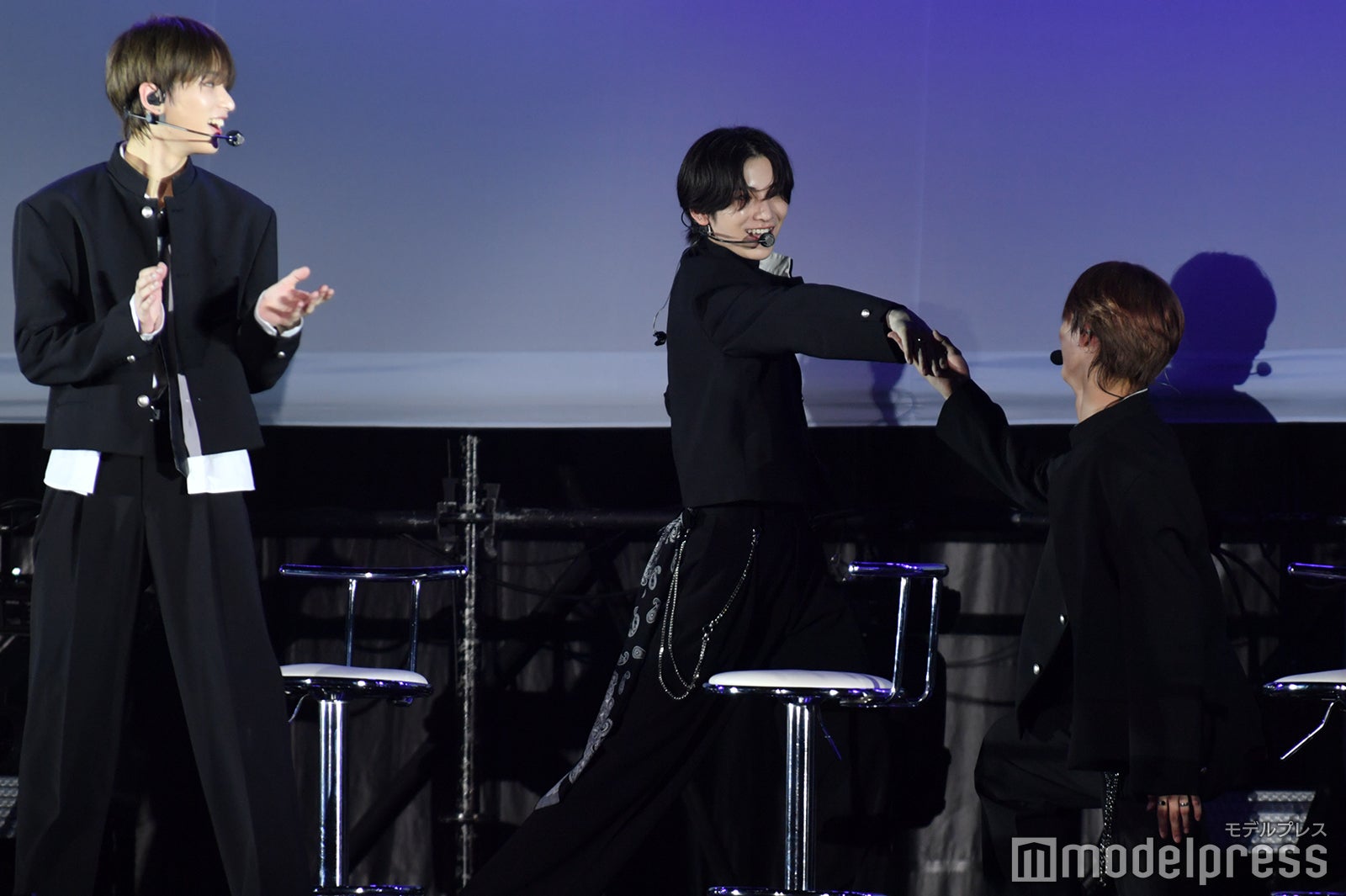 開演前には、FUMA、NICHOLAS、TAKIが“影ナレ”で登場。会場の熱気が最高潮に上がると、登場から「Scent of you」で迫力のステージを披露し、さらに会場を盛り上げた。