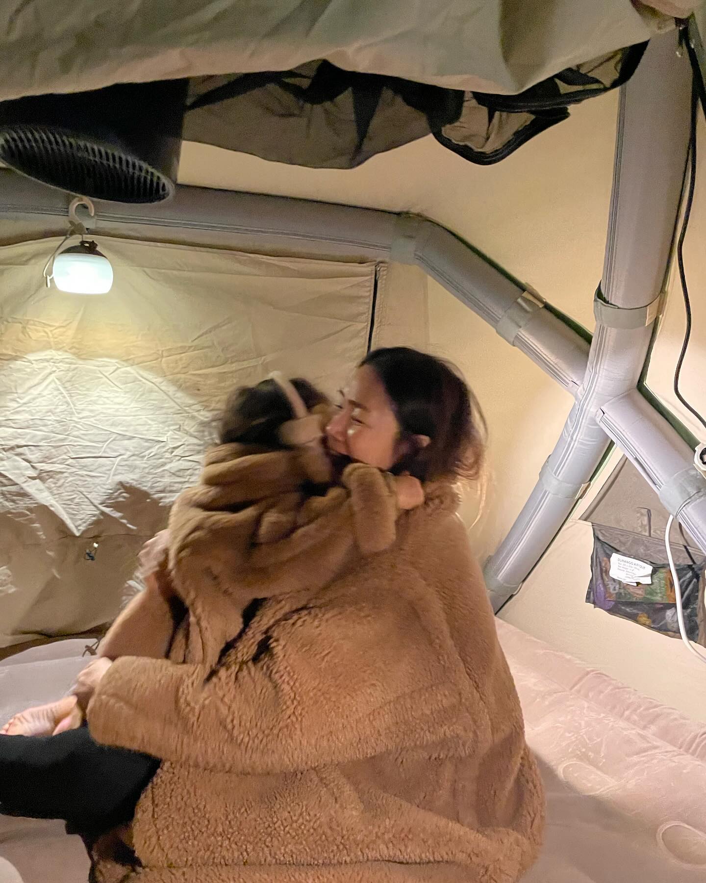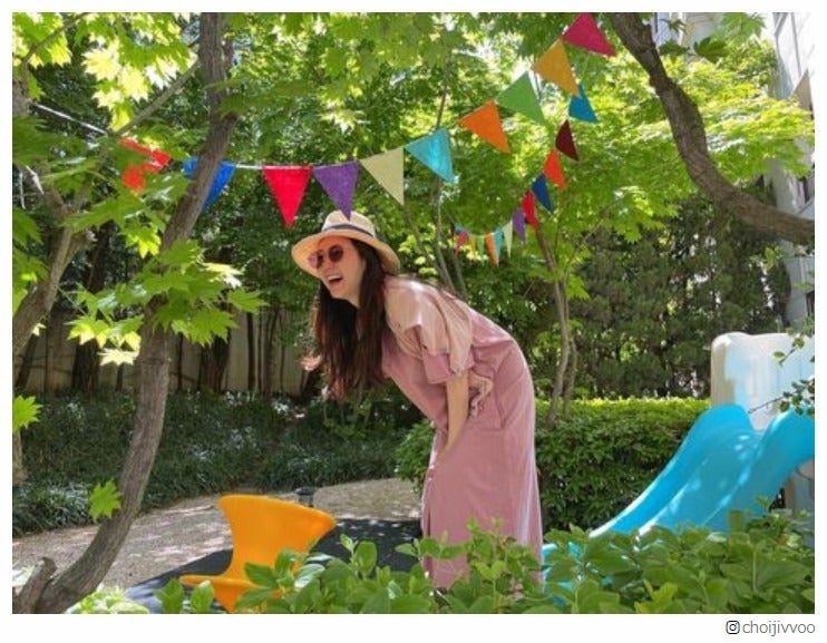 2018年3月に9歳年下で実業家の一般男性との結婚、2020年5月に第1子となる女児の出産を発表したジウ。木の葉やりす、ハートの絵文字とともにテントのような場所で、娘をハグしているショットや娘の後ろ姿を公開した。ボア素材のアウターを着用した娘とのペアルックを披露。ジウは、娘がテント内のライトのようなものに興味を示している横で微笑ましそうな表情を浮かべている。