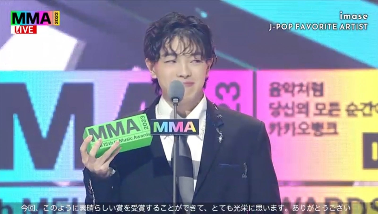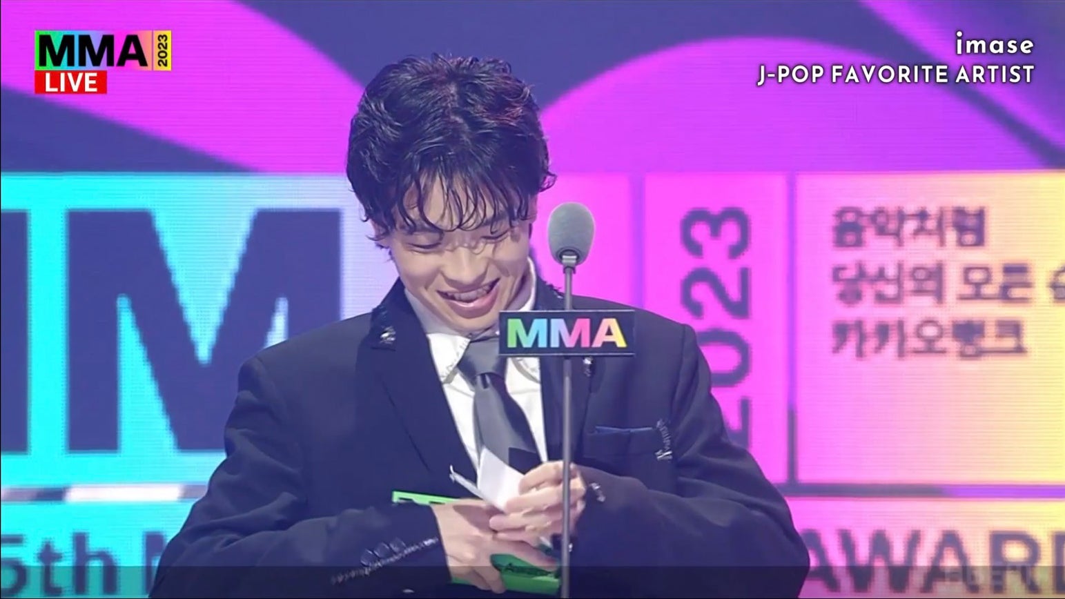 imase、K-POPアワードで韓国語のスピーチ NewJeans・ZB1らが見守る姿も<MMA2023>