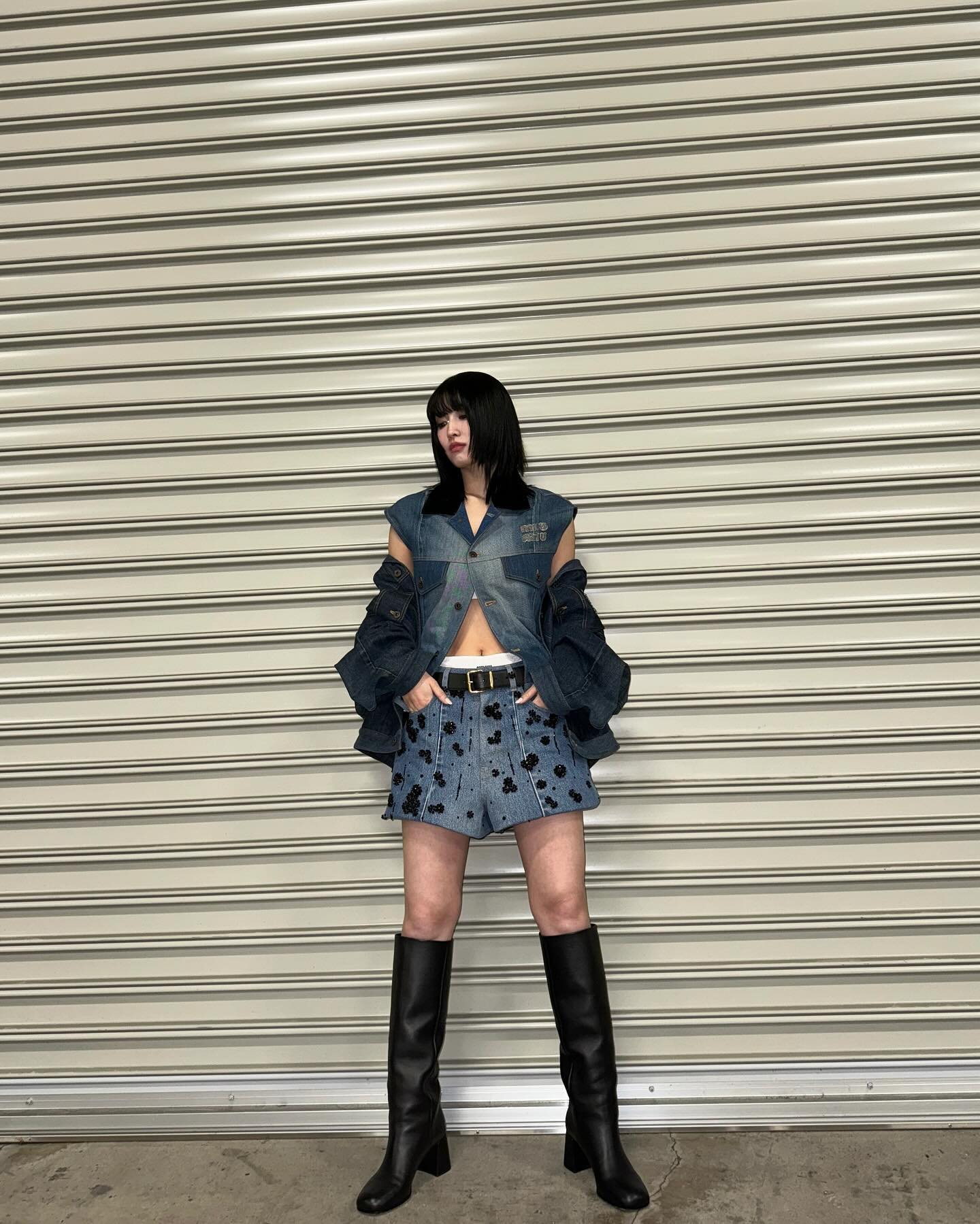 モモは今回、Miu Miu(ミュウミュウ)の新作「Miu Miu Upsycled」コレクションを身にまとった写真を複数公開。上下ともに、ヴィンテージデニム素材がモードな印象にアップグレードされている。グループ内でも、メリハリのある美しいボディラインに定評のあるモモ。カジュアルでヘルシーなルックでありながら、ボタンを開けた大胆なウエスト見せでセクシーな印象も感じられる。クールにまとめられたコーディネートの中で、モモの引き締まったウエストや腹筋が強調されたスタイリングとなっている。