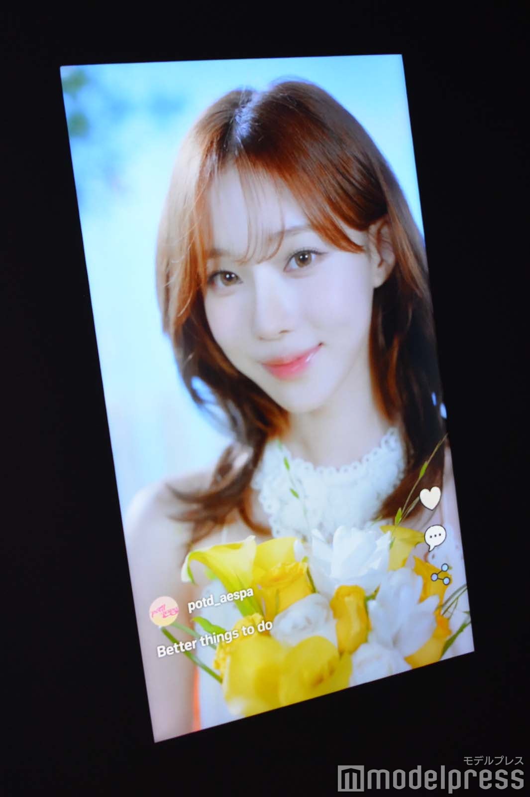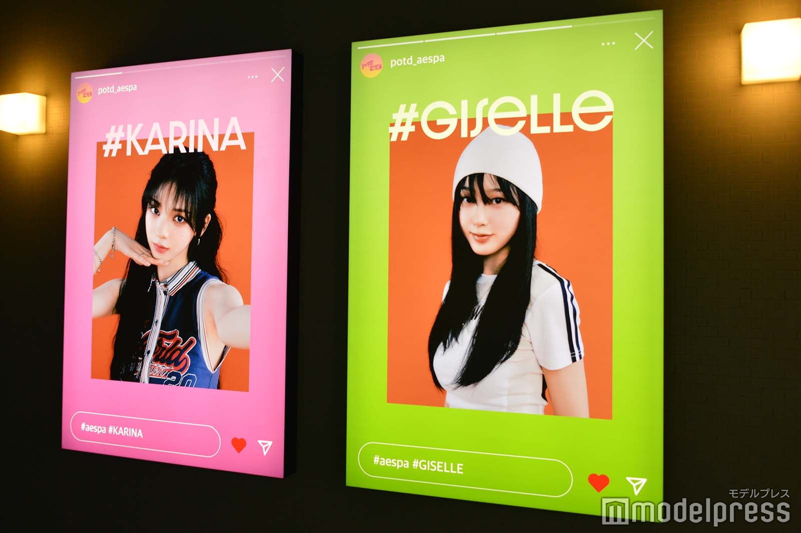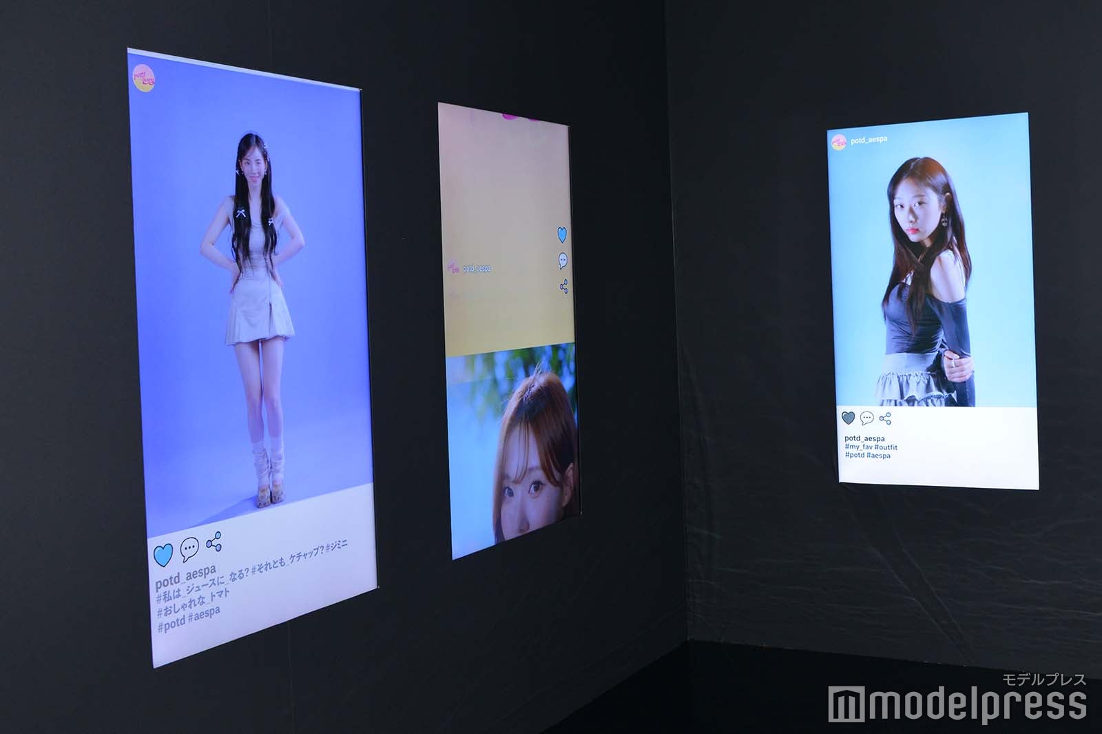 2023年韓国で開催され人気を博したaespa初の展示会がついに日本で開催。「#potd」とは#picture of the dayの略語で、aespaがMY(公式ファンネーム)と共有したい様々な日常の姿を垣間見ることができる、SNSがコンセプトのメディアアート展示会である。ファンが直接参加できる体験型コンテンツから、ファンに伝えるaespaのインタビュー映像、インタラクティブ体験空間など、ステージ上では見ることのできない姿を楽しむことができる。16日のオープンを前に、モデルプレスが会場に潜入。さっそく1階のスペースに足を踏み入れると、メンバーが順に1人ずつ映し出された大きなパネルが出迎え、そのスケールの大きさで早くも仮想空間へと連れ込まれた。パネルエリアでは、メンバーそれぞれがSNSをモチーフにした写真やポージングが展開されており、Instagramのストーリーズやフィード投稿を再現した“ここだけでしか見られないリアルな世界観”の数々に胸が高鳴った。