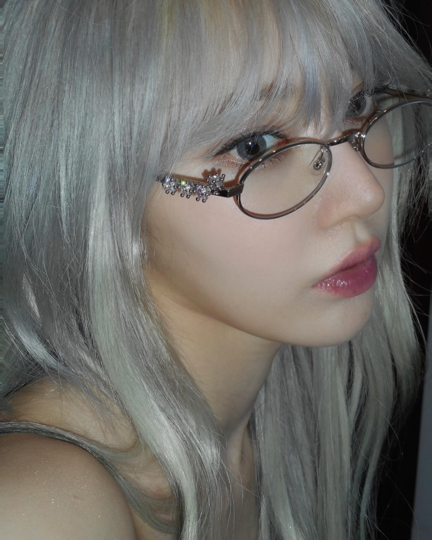 これまでの投稿では、美しいブロンドヘアーを披露していたSAKURA。この日の投稿では、グレーの絵文字とともに、金から銀へとカラーチェンジした髪を公開。さらに、限りなくフレームを細くした銀縁のメガネをつけ、クールな姿をアップした。このような細いフレームやフチなしのメガネは、空港に訪れた際にK-POPアイドルが着用しているなどファッションアイテムとして流行に。ENHYPEN(エンハイプン)のJAY(ジェイ)やaespa(エスパ)のKARINA(カリナ)、NewJeans(ニュージーンズ)のHYEIN(ヘイン)、IVE(アイブ)のREI(レイ)などもこれらのメガネを付けた姿を公開している。