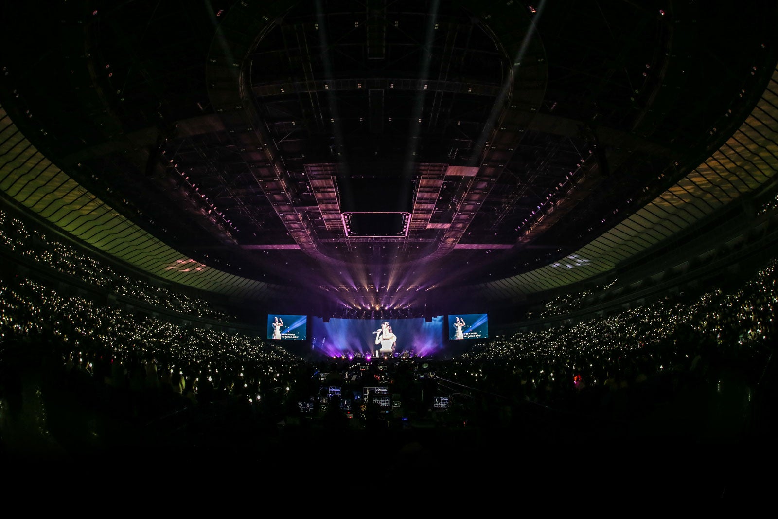 ライブ前半の「Celebrity」、「Blueming」では、会えなかった日々を埋めるように、合唱や大きな応援法が起こって盛り上がり、IUの「Hold My Hand」でのロングトーンは鳥肌もの。中盤で「Friday」、アコースティックバージョンで「strawberry moon」を披露。壮麗な深い森のCG映像を背に椅子に腰掛け披露した、バラードの「Through the Night」ではファンの合唱が起こる中、想いを込めて語りかけるように歌唱し、会場が深い感動に包まれた。