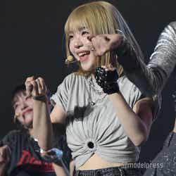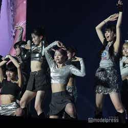 その後のミニコーナーは、2択のうち、観客の声援が大きいリクエストを選択してメンバーたちが実践することに。“見てみたいチャレンジ”として挙げられたガールズグループ・LE SSERAFIM(ルセラフィム)の「Smart」とアニメ「推しの子」の主題歌で話題を集めたYOASOBI「アイドル」の2択では、「Smart」が選ばれ、腰を使った鮮やかな動きでLE SSERAFIMの難曲のダンスを披露。すると「せっかく練習したしね…(笑)」と立て続けに「アイドル」も特別パフォーマンスし、ステージを盛り上げた。