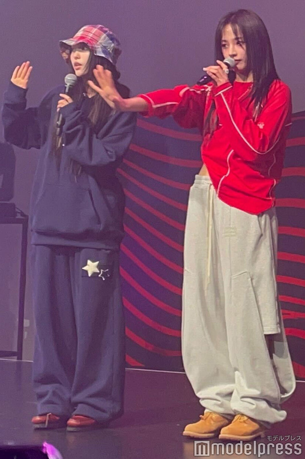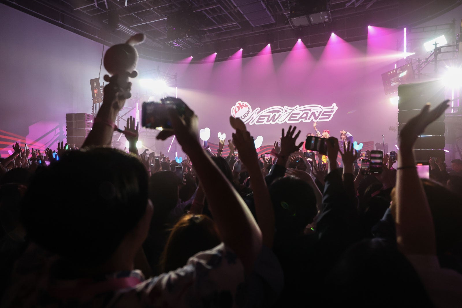 「Bunnies(ファンの名称)の皆さんに会えて本当に幸せです!」と満面の笑みを見せ、1人ひとり丁寧に日本語で自己紹介をしたメンバーは、そのままBunniesとアカペラで合唱した「NewJeans」へ。「ETA」で軽やかな夏の訪れを感じさせると、早くも最後の2曲を予告した。