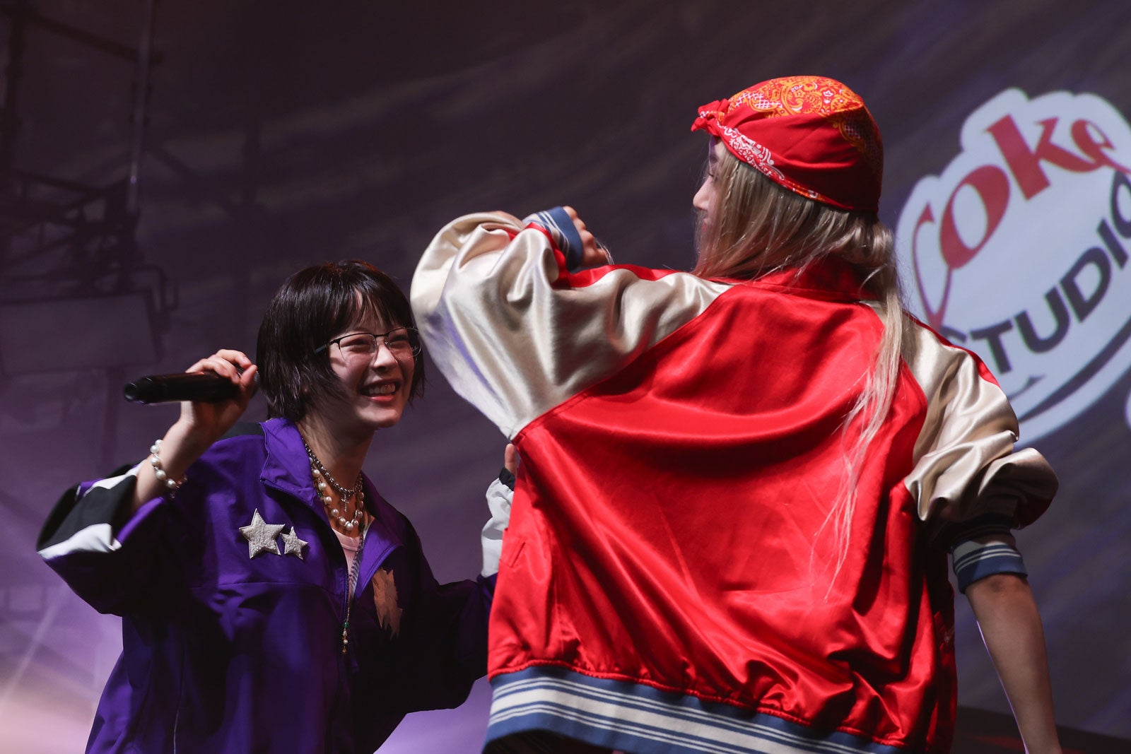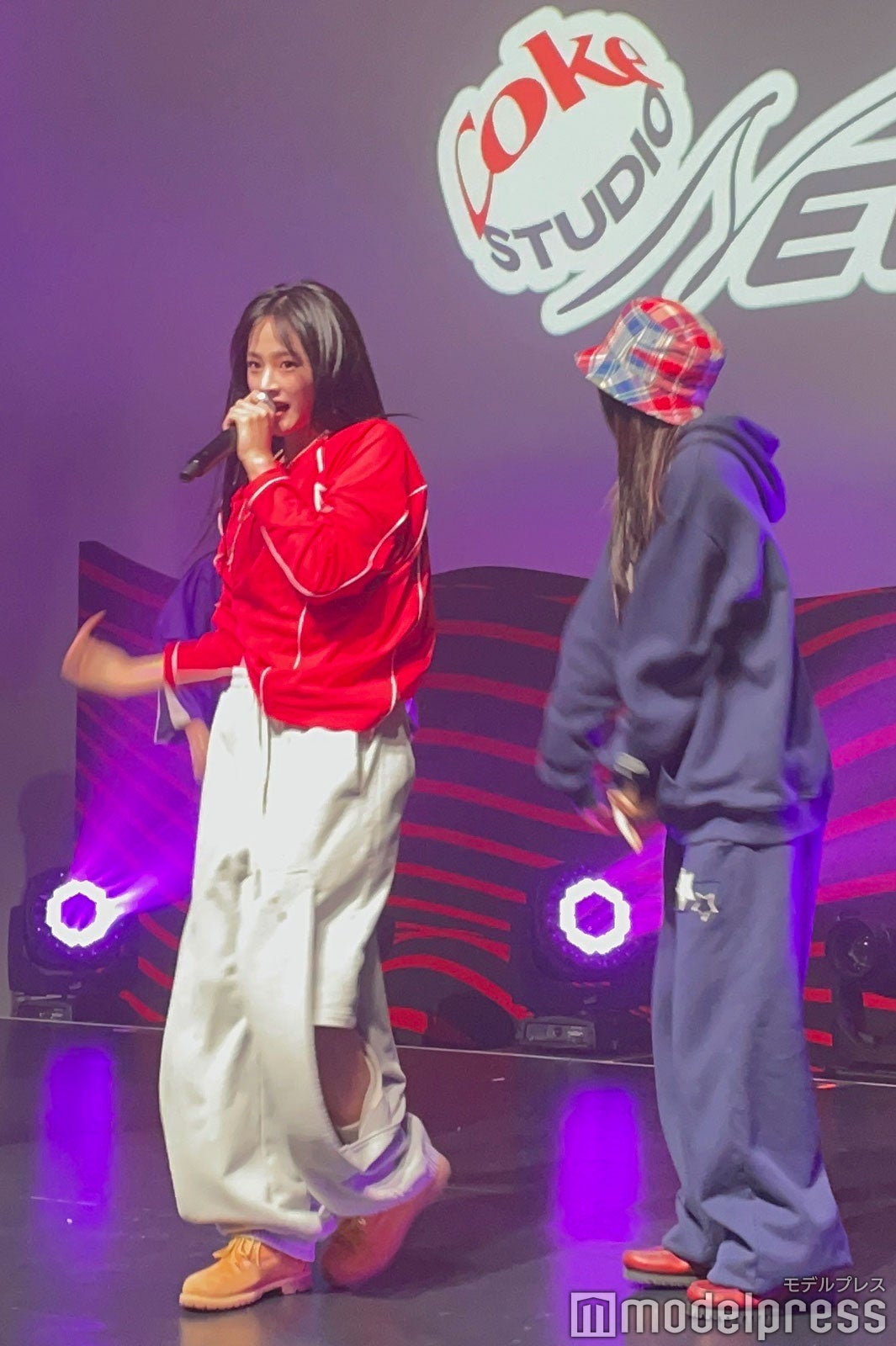 「コカ・コーラ」ならではの音楽体験を提供するプラットフォーム「Coke STUDIO」のグローバルアンバサダーとしてパフォーマンスしたNewJeans。なお、メンバーのHYEIN(ヘイン)は練習中に足の甲を微細骨折したとして活動を中断しており、今回は4人での出演となった。「コカ・コーラマシッタ」と何度もリフレインする歌詞が中毒性のあるコカ・コーラとのコラボレーション曲「Zero」からスタートしたライブ。続く「Ditto」は、同曲を手掛けた韓国のDJ・プロデューサーである250(イオゴン)のリミックスバージョンで爽やかに届けた。
