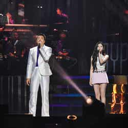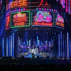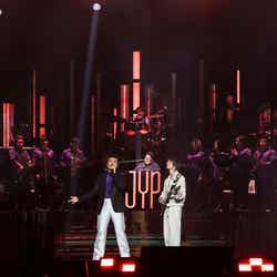 16日のJ.Y. Parkの紹介はSEVENTEEN(セブンティーン)のWOOZI(ウジ)が務め、降壇直前に「JYP…」とJYP Entertainmentではお馴染みのセリフを囁き、会場を沸かせる場面も。PLAVEが「The House You Live」カバー後、J.Y. ParkはHYBE LABELS傘下のPLEDIS Entertainmentに所属するベクホと「Elevator」「Switch to Me」を色気全開で披露した。さらにfromis_9(フロミスナイン)のメインボーカルであるPARK JI WON(パク・ジウォン)と「Farewell Under the Sun」を歌い上げ、ENHYPEN(エンハイプン)のHEESEUNG(ヒスン)と「Behind you」でしっとりと美声を響かせていた。