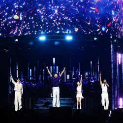 豪華コラボが続く中、次にサプライズ登場したのはなんとHYBEの議長バン・シヒョク氏。バン氏はJYP Entertainmentのプロデューサー出身で、JYPから独立後、HYBEの前進となるBig Hit Entertainmentを設立。J.Y. Parkとは苦楽をともにした仲で、そんなバン氏がJ.Y. Parkのステージでギター演奏するという貴重な演出に、会場は驚きの声で溢れた。ENHYPEN全員登場