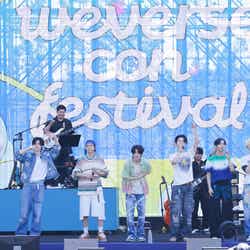 「Weverse Con Festival」は、音楽のジャンル、世代を超えた音楽の統合と新しいファン体験の場となることを目指し、HYBEが開催するファンのための音楽フェスティバル。従来のコンサートの概念を超え、グローバルスーパーファンプラットフォームであるWeverse(ウィバース)によるオン・オフライン体験はもちろん、多彩な付帯施設を含む屋内公演と屋外フェスティバルを網羅する新しい概念の公演となっている。同イベントには、HYBE LABELSアーティストだけでなく、Weverseに参加している様々なアーティストが出演。合計24組のうち9組がHYBE LABELSアーティストで、15組はWeverseに参加している国内外のアーティストだ。(modelpress編集部)