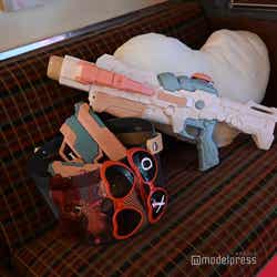 車内へと進むと、そこには赤と白を貴重としたオシャレな空間が広がっている。ハートのクッション&バルーン、チェック柄のソファー、そして壁には彼等のコンセプトフォトがオシャレに飾られ、思わずシャッターを切らずにはいられない。さらに水鉄砲や「XO」の文字が刻まれたハート型サングラスなど、7人のコンセプトフォトを再現できるような小道具も用意され、ENGENEがフォトジェニックに楽しめるようになっていた。