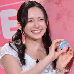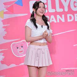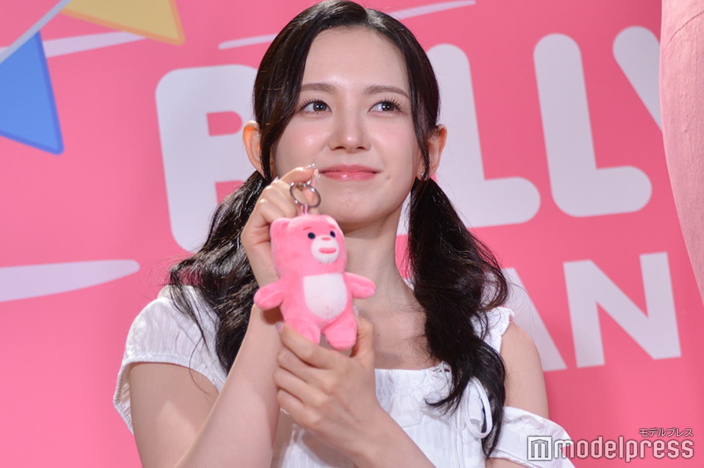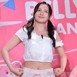 イベントでは、マシロがおすすめのベリゴムグッズを紹介。部屋に置いてあるというぬいぐるみや、ベリゴムの顔がワンポイントで施された白Tシャツ、キーリングを順に手に取り解説していった。そして最後には、マシロオリジナルの缶バッチを披露。「下手なんですけど…」と照れながら直筆であることを明かし、「私が好きなピンクと水色を使いました」とポイントを説明した。7月15日をもって9人組グローバルガールズグループ・Kep1er(ケプラー)としての活動を終えたマシロは、7月よりMADEINとして新たな活動をスタート。同日は再デビュー発表後、日本初会見となりミニ丈の肩出しトップスとピンクのプリーツスカートを合わせたガーリーなスタイリングで登場。美しいウエストやスラリと伸びた脚が輝いていた。