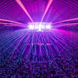 トークでは、「この大きな会場でWaveが見たい!」というIVEに約48,000人がペンライトで巨大なWaveを作り出すと、「めっちゃキレイ」とメンバーたちが感嘆。美しい光景を堪能した後は、ガウル(GAEUL)から発せられた、「ここ東京ドームで、私たちの未発売の曲をサプライズで公開しちゃいます!」という衝撃発言に会場から「ウォー」という雄たけびが上がる。レイ(REI)が「良い機会をいただけて、デヴィッド・ゲッタさんと作業をしました。その曲を東京ドームで初披露します!特別な曲なのが、聴いたらわかると思います」と言うと、流れ出したのは、坂本龍一の「戦場のメリークリスマス」のメロディー。そのメロディーにメンバーたちの柔らかな声が乗り、ハウスのビートと共に曲が展開していく「SUPERNOVA LOVE」にドームが熱狂。そのまま初パフォーマンスとなる日本の新曲「CRUSH」に突入したが、この特別な2曲は、この日のハイライトといえるだろう。