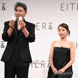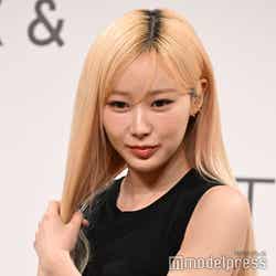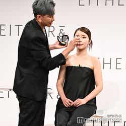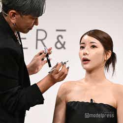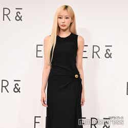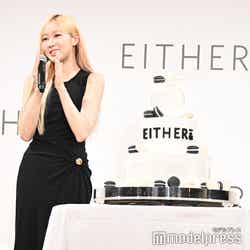 今秋ローンチされる韓国・ソウル発コスメブランド「EITHER&(イーザーアンド)」が日本初上陸し、ジゼルがミューズに就任。ブランドの世界観をイメージした「まるでAIのようなクールな衣装」をテーマに、黒のタイトドレスを着こなした。また「しっとりで綺麗な肌」がポイントというメイクは、金髪のヘアスタイルと相まって透明感を生み出していた。ミューズ就任に「本当に本当に嬉しいです。『EITHER&』と私の新しい姿をお届けしたいと思います」と意気込み。ジゼルが出演したスペシャルムービーも放映され「3つのコンセプトで撮影したんですけど、全部私に似合うコンセプトをよく見てくださっていて、本当に感動しました」と笑顔を浮かべた。