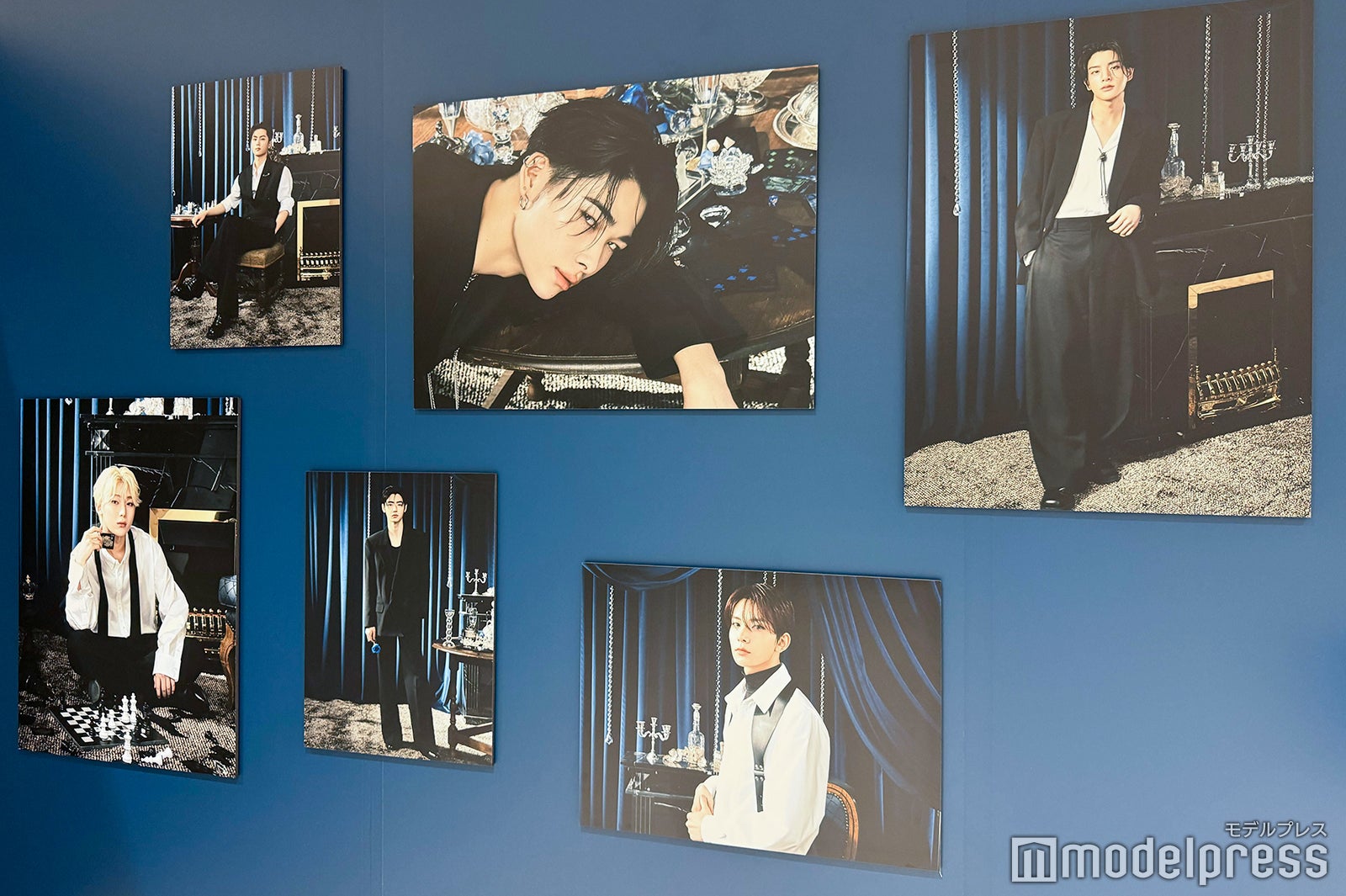 今回の撮り下ろしではシックなモノトーン衣装が彼等の魅力を一層引き出しているが、会場をさらに進むと本人たちが着用した衣装も展示。近くでじっくりと眺めることができる。最後にはフォトスポットがあり、メンバーの名前が書かれたプロップスを自由に使用して撮影可能。“推し”のビジュアルの前でそのメンバーの名前を持って撮影することができ、一緒に訪れたENGENE仲間と撮っても楽しめるだろう。