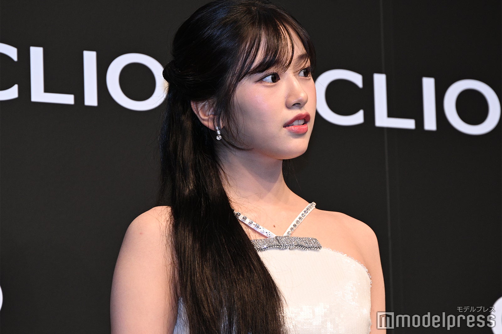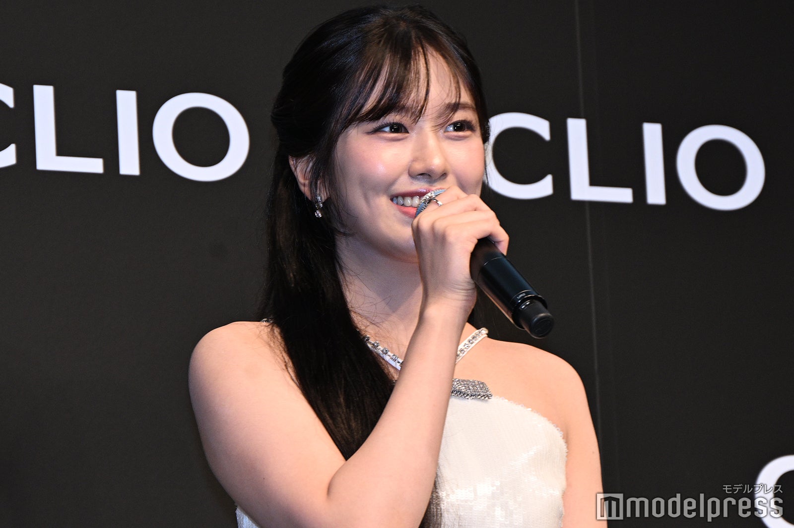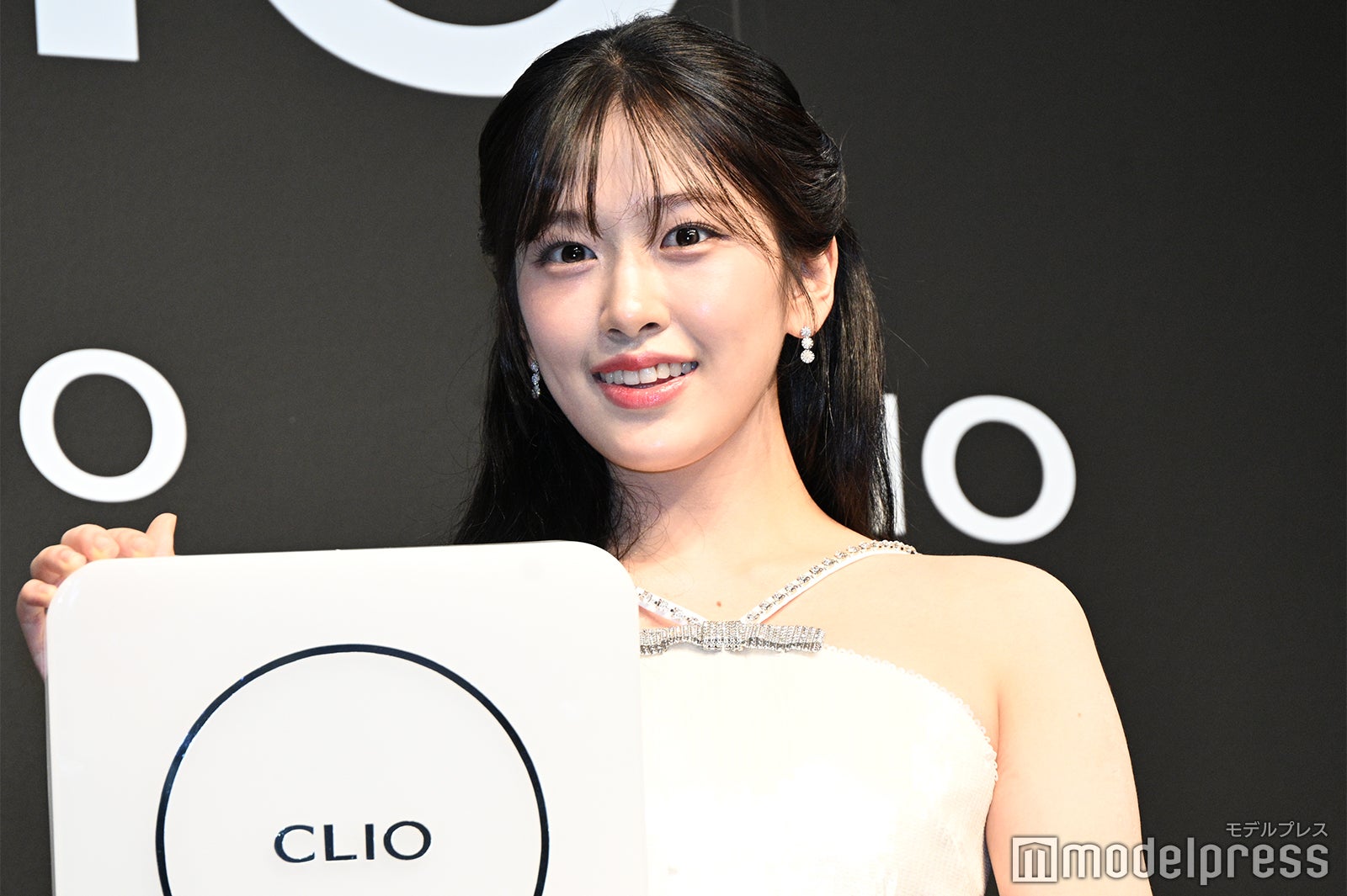 同ブランドのグローバルアンバサダーを務めるユジンは、ホワイトのタイトなミニ丈ドレスを着用して登場。足元には高いヒールを合わせ、美しい脚を際立たせた。ファッションポイントについては「白いクッションに似合う、白い服がポイントです!」と答え、今回のメイクアップについては「ツヤ感がポイントです」と明かしたユジン。アンバサダー2年目を迎えた心境について問われると、「まずは本当に光栄です。これからもずっとCLIOと過ごしたいです!」と流暢な日本語で答えた。