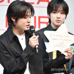 さらに、2024年の残りの期間にやりたいことを聞かれると、リョウは「ツアーで美味しいものを食べながら楽しくできたらいいな」と明かし、シオンは名古屋で芋けんぴを食べたいと願望を告白。サクヤが「僕たちラーメンとかお寿司が好きで…」と口を開くと、リクやリョウから「(サクヤはラーメンを)食べないです」とタレコミが。サクヤは「僕以外の5人が好きです(笑)」と打ち明け、普段はラーメン屋を訪れてもチャーハンなどを食べることが多いということから「付き合わされてる(笑)」と笑いを誘っていた。シオンが食べたいという寿司以外で、日本人メンバーからおすすめしたい食べ物を問われると、韓国人メンバーのジェヒが真っ先に挙手。ジェヒがハッと驚き「ごめんなさい!」と回答をやめようとするも、MCから「是非!」と促され、サクヤも「いいよ!」と頷くと、ジェヒは「じゃがりこ」と回答。「辛いやつも好きで…」とお気に入りの味も発表していた。(modelpress編集部)