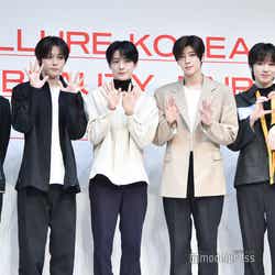 韓国のビューティ&ファッションスタイルマガジン「Allure Korea」が14日に開催する同イベント。アンバサダーとして登場したNCT WISHは、同誌で披露した“くっつきショット”も可愛く披露した。イベントに登壇した思いを問われたシオン(SION)は「東京で開催されるこのようなイベントに参加できること、とても感慨深く感じています」とコメントし、ユウシ(YUSHI)も「先ほどサインを書いたんですけど、可愛い写真が置いてあって嬉しかったです」と笑顔。同誌の撮影で印象的なことを問われたリク(RIKU)は「初めてこういうセクシーなコンセプトで撮ったので…」と新鮮さを語ると、「セクシーな顔をやってもらってもいいですか?」とMCからリクエストが。後ろを向いて照れつつも、可愛らしく頬に手を添えたポーズを披露し「今日は可愛い感じで…」とまとめた。