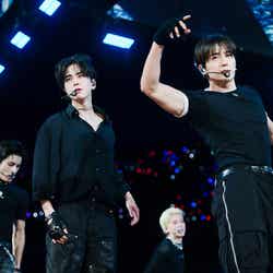 DAY2のMCはZEROBASEONE(ゼロベースワン)のハン・ユジン、THE BOYZ(ドボイズ)のジュヨン、ITZY(イッチ)のユナ。3人がステージに上がった瞬間から会場には歓声が響き渡り、微笑ましい掛け合いで会場を癒やした。トップバッターはNEXZ(ネクスジ)が飾り、&TEAM(エンティーム)、JO1(ジェイオーワン)と日韓を行き来して活躍するグローバルグループが続々登場。NEXZはStray Kids(ストレイキッズ)の「Chk Chk Boom」、&TEAMはaespa(エスパ)の「Supernova」のスペシャルカバーステージも披露した。