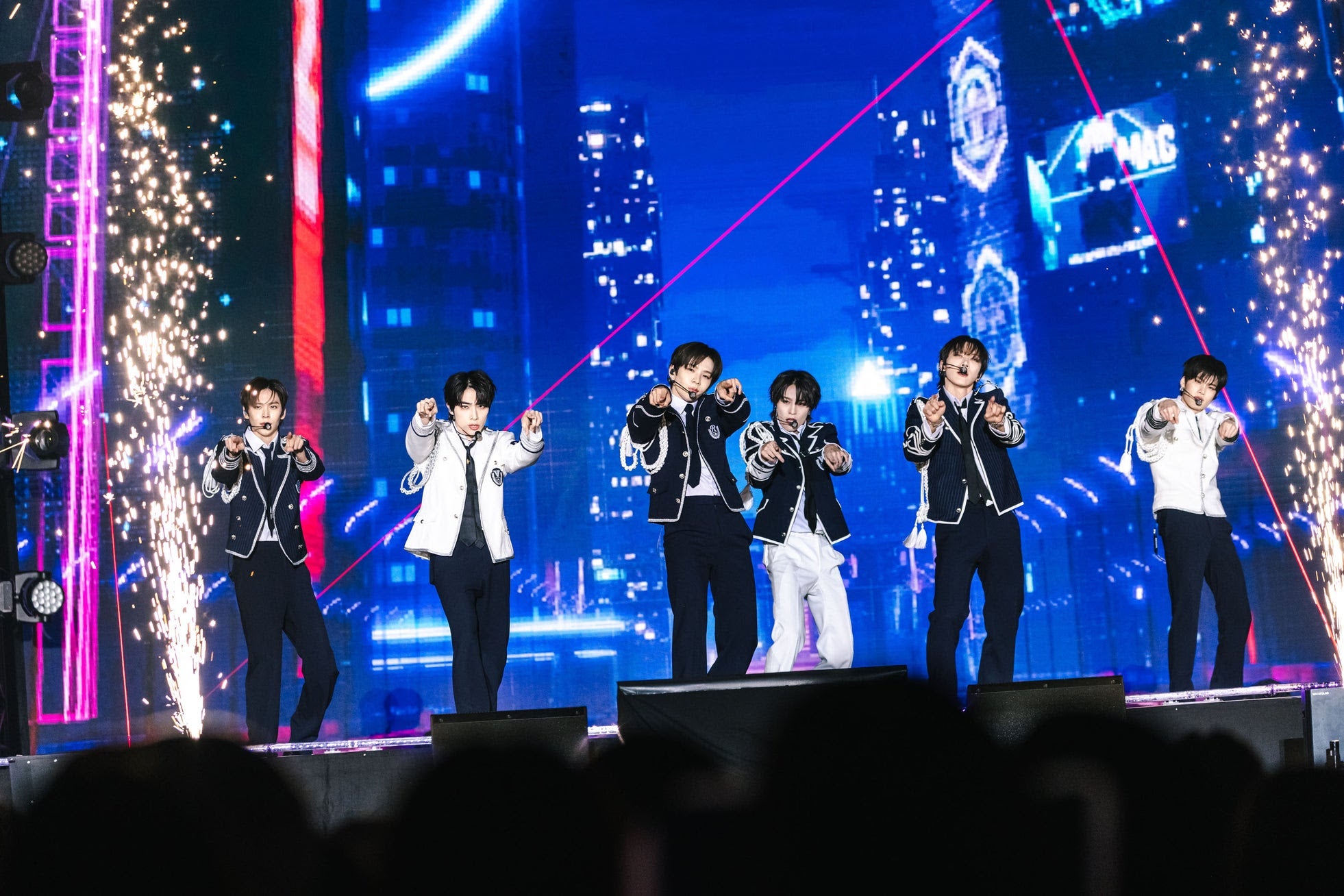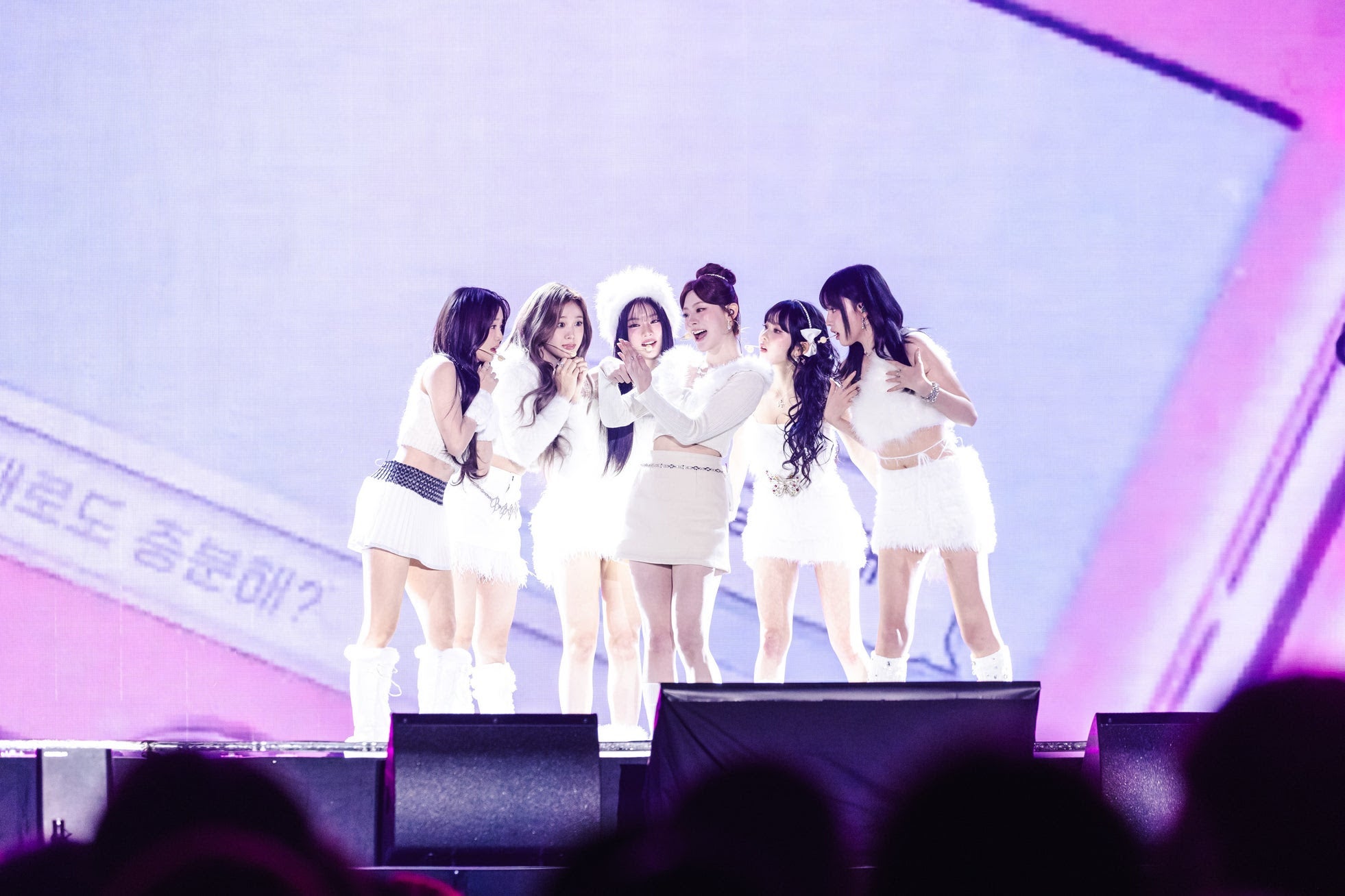 本公演の魅力の1つがコラボステージ。RIIZE(ライズ)とWayV(ウェイブイ)が、所属事務所の先輩でもあるEXO(エクソ)の名曲『Tempo』をカバーすると、会場は盛り上がりをみせる。さらにATEEZ(エイティーズ)の弟分、デビュー2年目のxikers(サイカース)が『BITTER SWEET』の熱いパフォーマンスの後には、勢いに乗るガールズグループNMIXX(エンミックス)が登場。新曲『See that?』を含む4曲を披露。定評ある歌とダンスで観客を沸かせた。