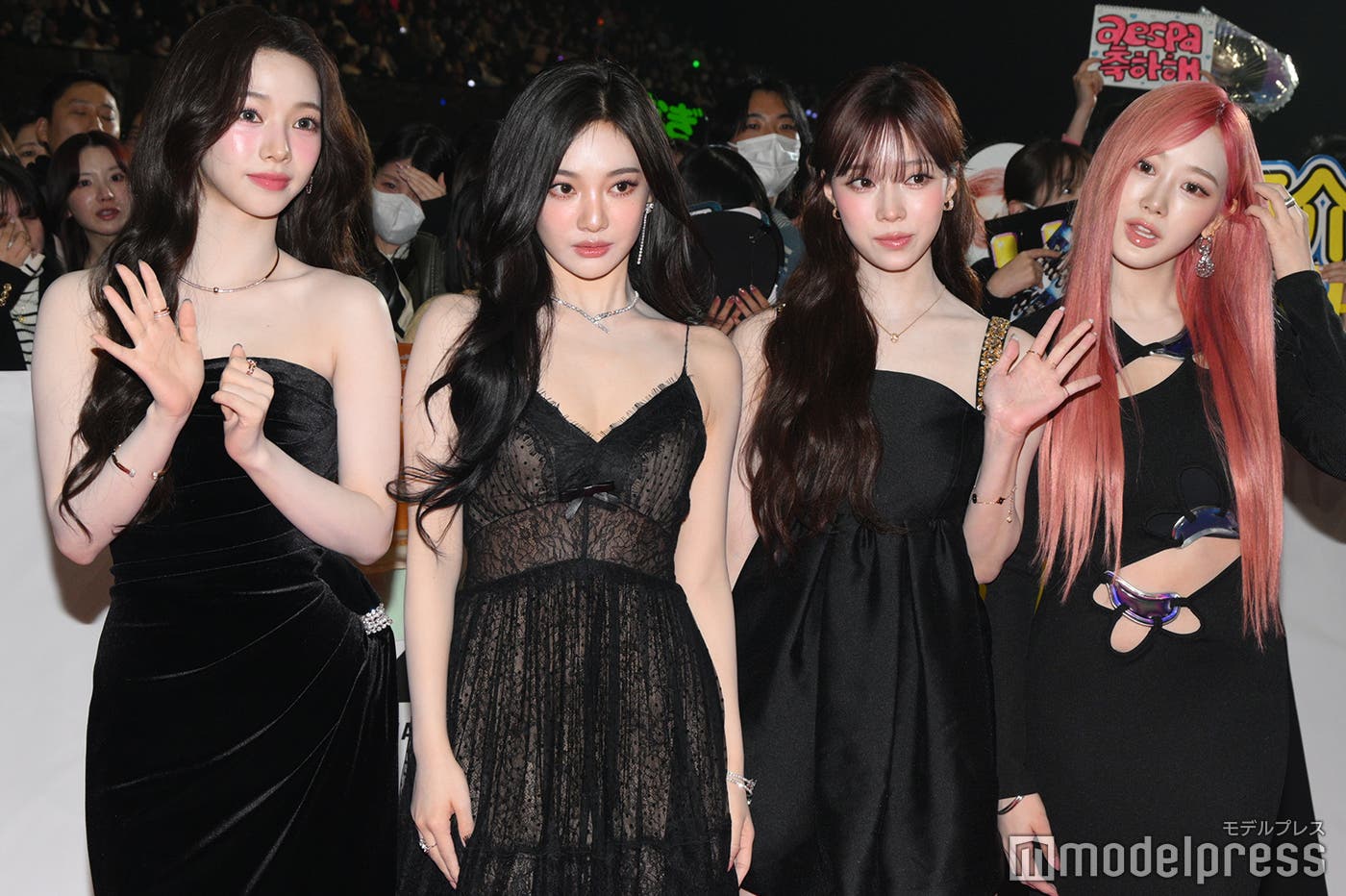 aespa、大胆肌見せブラックドレスで圧巻オーラ 日本初レッドカーペット降臨【MTV VMAJ】