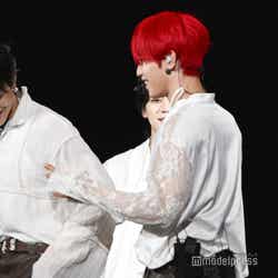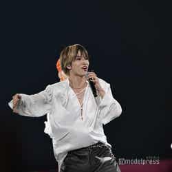 白シャツに黒ボトムスのシックな装いで登場したJO1のステージは『Love seeker』で勢いよく幕を開けた。挨拶では、河野純喜が「雨の中来てくれてほんまにありがとう!テンション上げていきましょう!」と関西弁を交えるなど、1人ひとりがカメラにアップになる度に歓声が沸く会場。また、佐藤景瑚は「ハイサーイ!沖縄から来た人いますかー?ハイサーイ!」と叫び、金城碧海は「JO1のO」、木全翔也は「JO1のT」と自称し、独特な自己紹介で笑いを誘った。また、愛に溢れた瞬間として4月に開催した初東京ドーム公演を振り返り、JAM(JO1ファンの総称)に感謝。川西拓実が「溢れる愛をお返しするべきではありませんか」と呼びかけ、金城が観客の歓声を煽り「このエナジーのまま次の曲に行きたい」「準備できてますか?」とベートーベンの交響曲第5番「運命」をサンプリングした『BE CLASSIC』でインパクトを与えた。そのエナジーの溢れるまま『HAPPY UNBIRTHDAY』でボルテージは上昇。その後のMCでは、ダンスブレイクを久々に披露したことをアピールしていた。