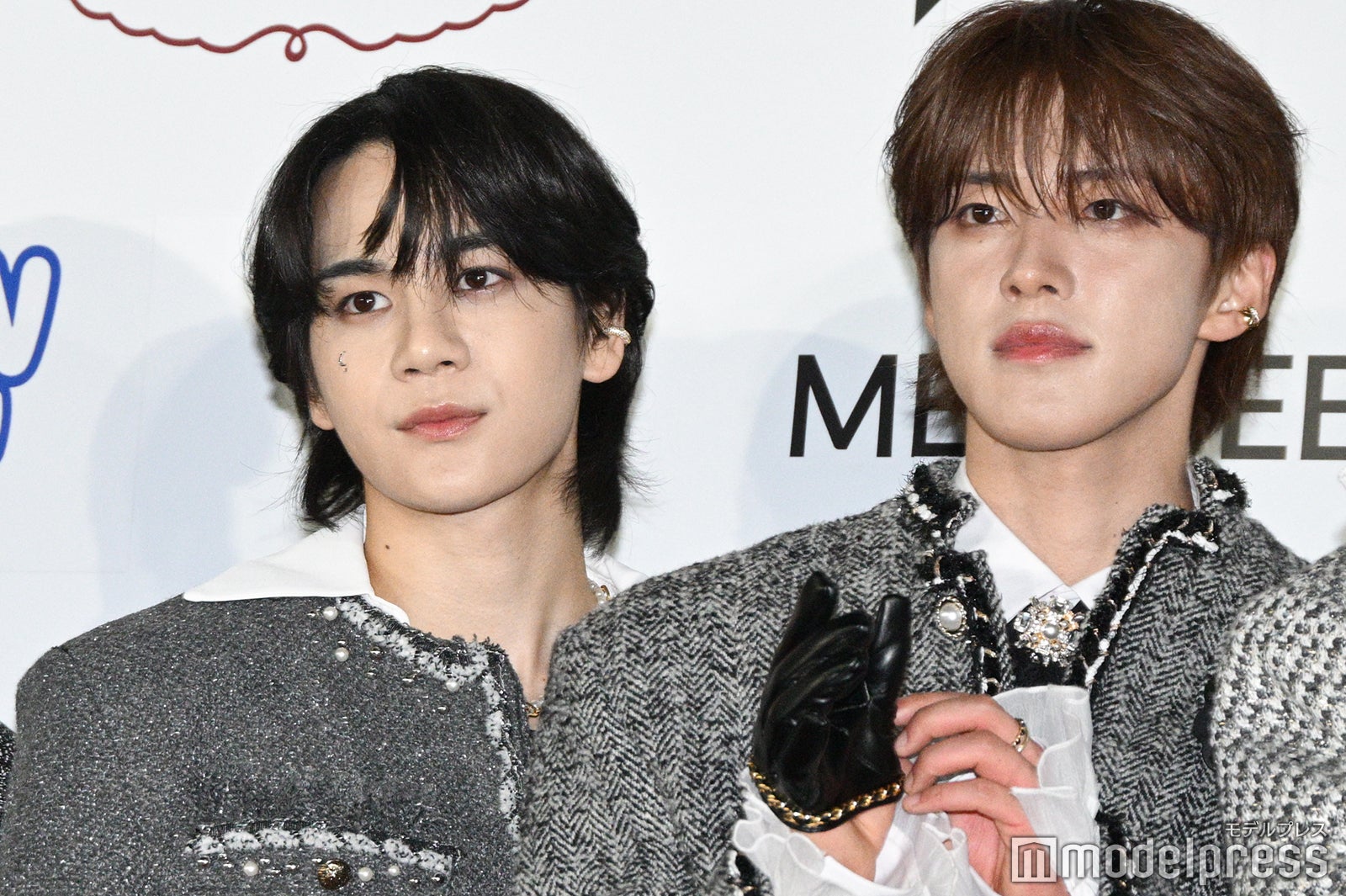 鮮やかな髪色が映えるモノトーンのドレッシーな装いで登場したJO1。與那城奨はイエローからレッドに、川西拓実はハイトーンから黒髪にヘアカラーをチェンジした。4月20日・21日に開催した初の東京ドーム公演について、鶴房汐恩は「僕たちがデビューしたのがコロナ禍と被っていたので、東京ドームで有観客でできて本当に幸せな時間」と回顧。成功に収めた公演を受け、與那城は「このメンバーがいなかったらここまで走ってこれなかったので、美味しい焼肉を奢りたいと思います」と宣言。河野純喜らメンバーが「今言いましたからね!」と即答し、鶴房が手を合わせるなど、メンバーは喜んでいた。