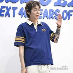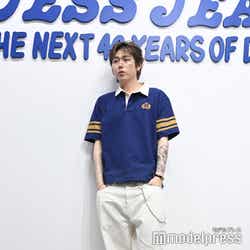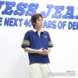 「GUESS JEANS」のブランドアンバサダーを務めるZICOは、鮮やかなブルーに黄色のラインが夏らしいポロシャツと、サイドのデザインが個性的なルーズデニムを合わせたストリートスタイルで登場。冒頭には「こんにちは、皆さん。ZICOです。よろしくお願いします」と流暢な日本語で挨拶した。ZICOは「ブルーのポイントでしっかりとエッジを利かせたこの展示の全部に圧倒されたので、今もなお楽しんでいる途中」と心を躍らせた様子。自身のファッションでも同じくブルーを身に着けていることに触れられると「今日はオールドスクールとニュースクールを適度に融合させた」と、ルーズなフィット感がニュースクールを思わせるパンツ、カラーを見せて「GUESS」本来のオールドスクールを表現したトップスを組み合わせていると伝えた。
