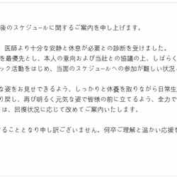 公式サイトは「Kep1erのメンバー・YOUNGEUNの今後のスケジュールに関するご案内を申し上げます」と切り出し「YOUNGEUNは最近、体調が優れず、医師より十分な安静と休息が必要との診断を受けました。そのため、アーティストの健康回復を最優先とし、本人の意向および当社との協議の上、しばらくの間活動を休止することとなりました」と発表。「これに伴い、8月のカムバック活動をはじめ、当面のスケジュールへの参加が難しい状況となりました」と報告した。続けて「YOUNGEUNはファンの皆様に元気な姿をお見せできるよう、しっかりと休養を取りながら日常生活を送る予定です」とした上で「当社も、YOUNGEUNが1日も早く健康を取り戻し、再び明るく元気な姿で皆様の前に立てるよう、全力でサポートいたします。また、今後の活動に関するお知らせについては、回復状況に応じて改めてご案内いたします」と伝えている。