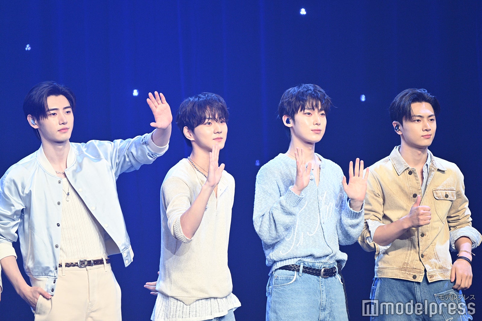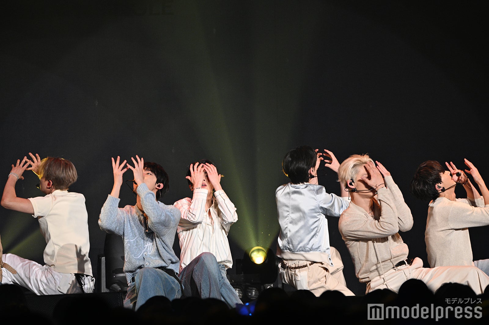 さらにSUNOO(ソヌ)は「僕はこれからもたくさんのENGENEの皆さんの前でステージに立ちたいなという風に思いますし、皆さんに良い影響を与えられるアーティストになりたいなと思います」と言い、「僕も準備したコメントがあります」と自身もENGENEのために用意した言葉があると告白。「自信はないですが…(笑)」と照れつつも「ENGENE、いつも僕のそばにいてね。絶対にどこにも行かないで。ずっと一緒だよ」と日本語で真っ直ぐ伝え、会場からは溢れんばかりの歓声が上がった。