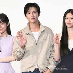 同作でヒロイン・ヨルムの妹で、聴覚障がい者の水泳グループに所属し、オリンピックを目指すガウルを演じたミンジュ。この日の会見では、黒と白のクラシカルなミニ丈ワンピースを着こなし、美しい脚を披露。しかし、登場時には靴の紐がほどけてしまうハプニングが発生する場面もあり、冒頭の挨拶では「かっこよく素敵に登場したかったんですけど、靴の紐をほどけてしまって…(笑)」と可愛らしい笑顔を見せていた。また、作品を引っ提げての来日については「私はIZ*ONEとして活動のためによく日本に来ていたんですけど久しぶりに来日できて嬉しい」と喜んでいた。