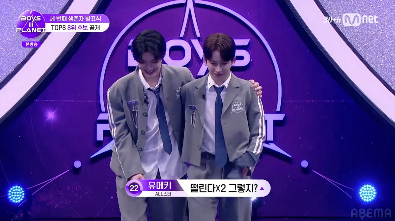 9月18日、Mnetのグローバルボーイズグループデビュープロジェクト「BOYSⅡPLANET」(以下「ボイプラ2」/毎週木曜21時20分~)の第10話がABEMAにて日韓同時・国内独占無料放送された。第3回生存者発表式が行われ、16人の生存者と同時に脱落者が明らかに。練習生の別れに反響が寄せられた。