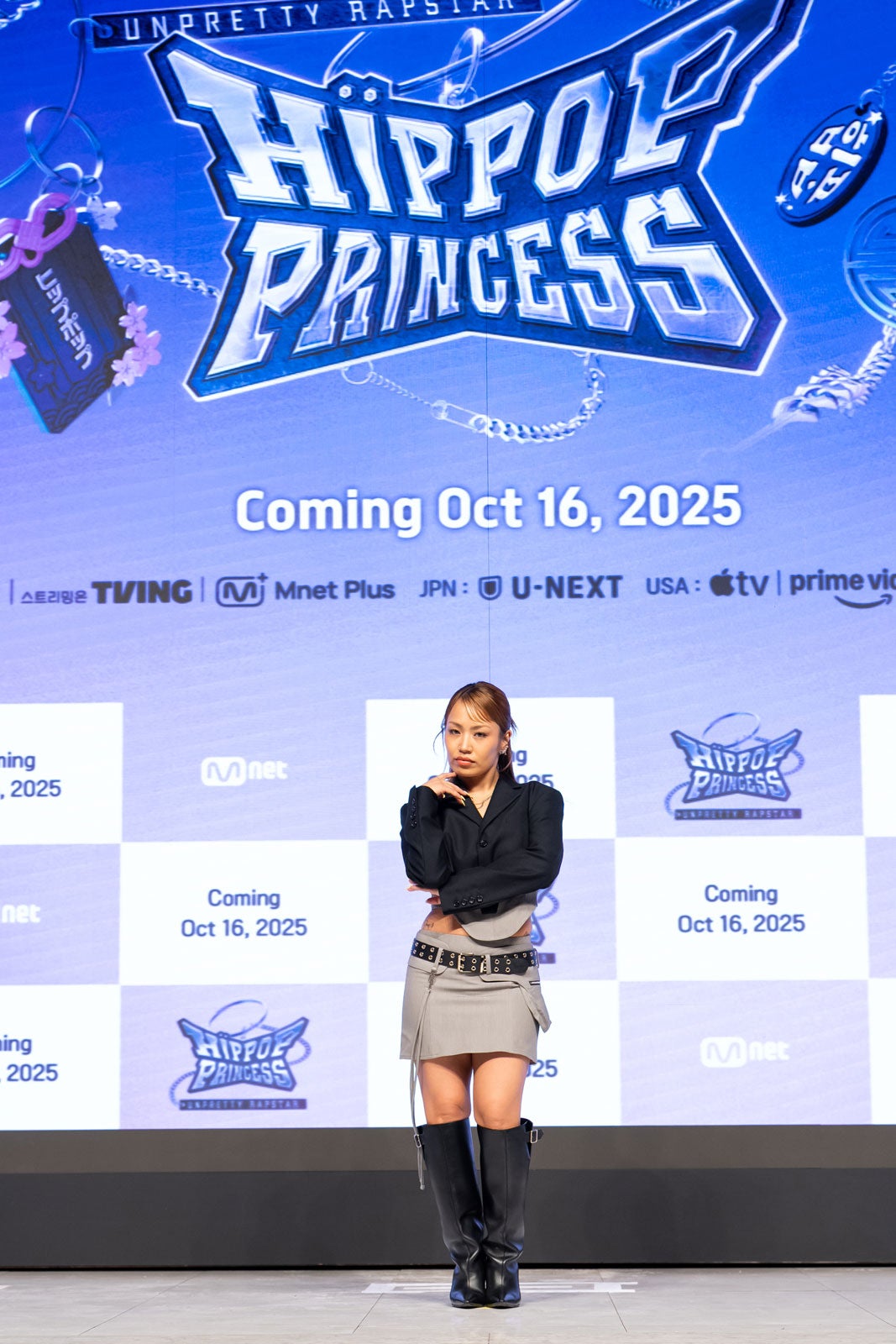 単独MCとして番組を率いるのは、アイドルグループi-dleのリーダー・ソヨン。2016年のラッパーオーディション番組『Unpretty Rapstar3』で最年少ながら強烈なインパクトを残し、作詞家・作曲家・プロデューサーとしても活躍する彼女は、まさに参加者たちのロールモデル。9年ぶりにMC&メインプロデューサーとして“Unpretty Rapstar”シリーズに帰ってきた。ソヨンは「『Unpretty Rapstar』の新たなシーズンとして『HIP POP Princess』が放送されることになるとは思っていなかったので、とてもうれしいです。当時、私は高校生だったのですが、9年という歳月を経て大人になった今、再び参加することができてとても光栄です」と感想を伝えた。