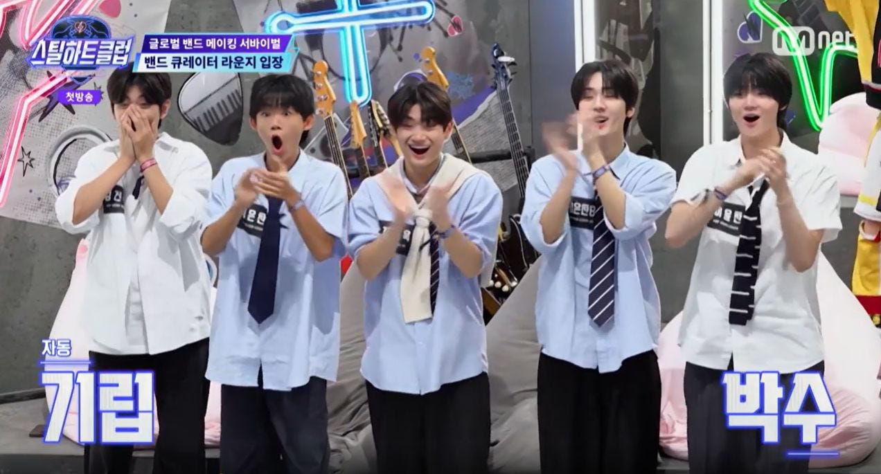 バンドオーディション番組『STEAL HEART CLUB』第1話にて、番組のMCを務めるムン・ガヨンが登場すると、参加者の間にどよめきが広がった。