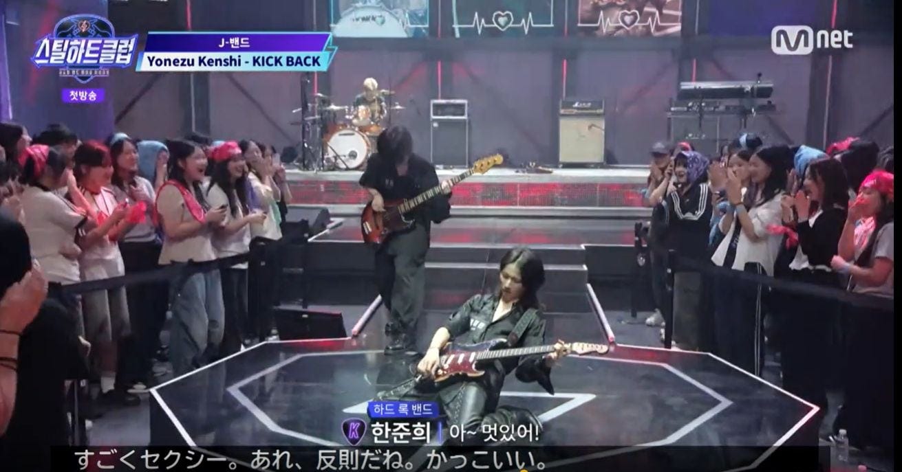 ケイテン、マーシャ、カズキからなるJバンドチームが演奏したのは、米津玄師の「KICK BACK」。序盤からステージを降りて観客の近くに近づき、迫力たっぷりの演奏で圧倒する。マーシャが花道に進んでキレのいいベースソロを披露すると、ケイテンは手拍子をして盛り上げた。そしてギターソロではケイテンが高速の指さばきを披露して、観客をメロメロに。参加者たちも「すごくセクシー」「あれは反則だね」と、降参したように話した。