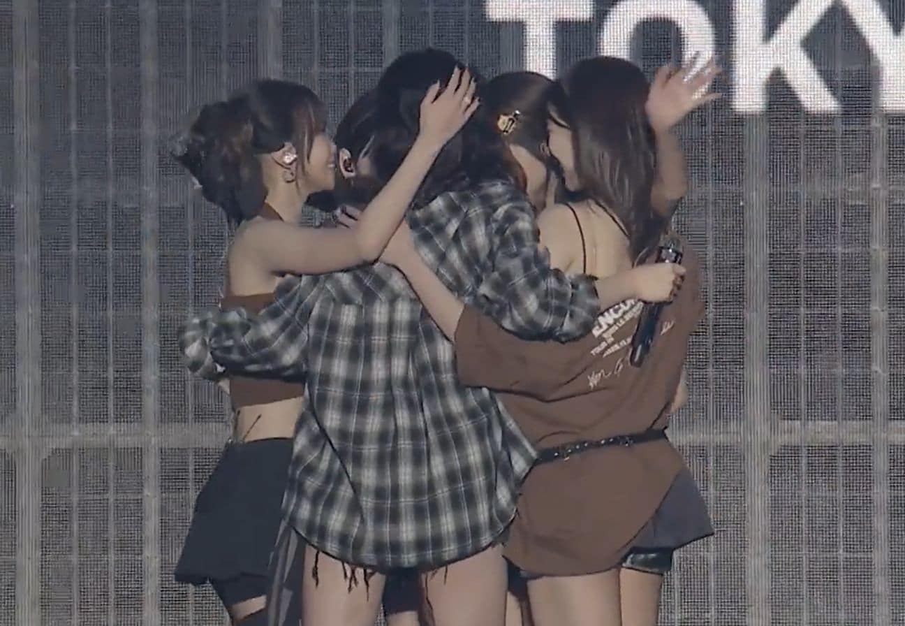 HUH YUNJINは、東京ドーム公演の開催を知らされた際の思いを述懐。「正直その時は全然実感が湧きませんでしたが、涙が流れました。その涙にはいろんな理由があったと思いますが…忘れていたものの価値を誰かが再発見してくれた時の気持ちってわかりますか?大変な時間を過ごしていた私にとっては、一筋の光のような希望でした。恥ずかしがらなくて大丈夫、あなたの情熱はまだ有効だ、夢を見てもいいんだよ…という慰めのように聞こえました」と、彼女らしい感性に満ちた言葉で思いを伝える。そして涙ながらに「スピードが違ってもお互い導き合っているメンバーに、本当にお疲れ様でしたと言いたい。同じ夢を見てくれてありがとう。これからもっと大きな夢を見ようね」と感謝を伝え、メンバー全員で温かいハグをした。
