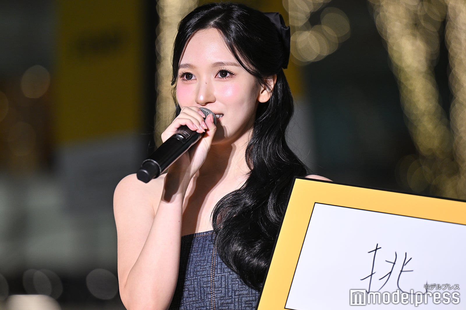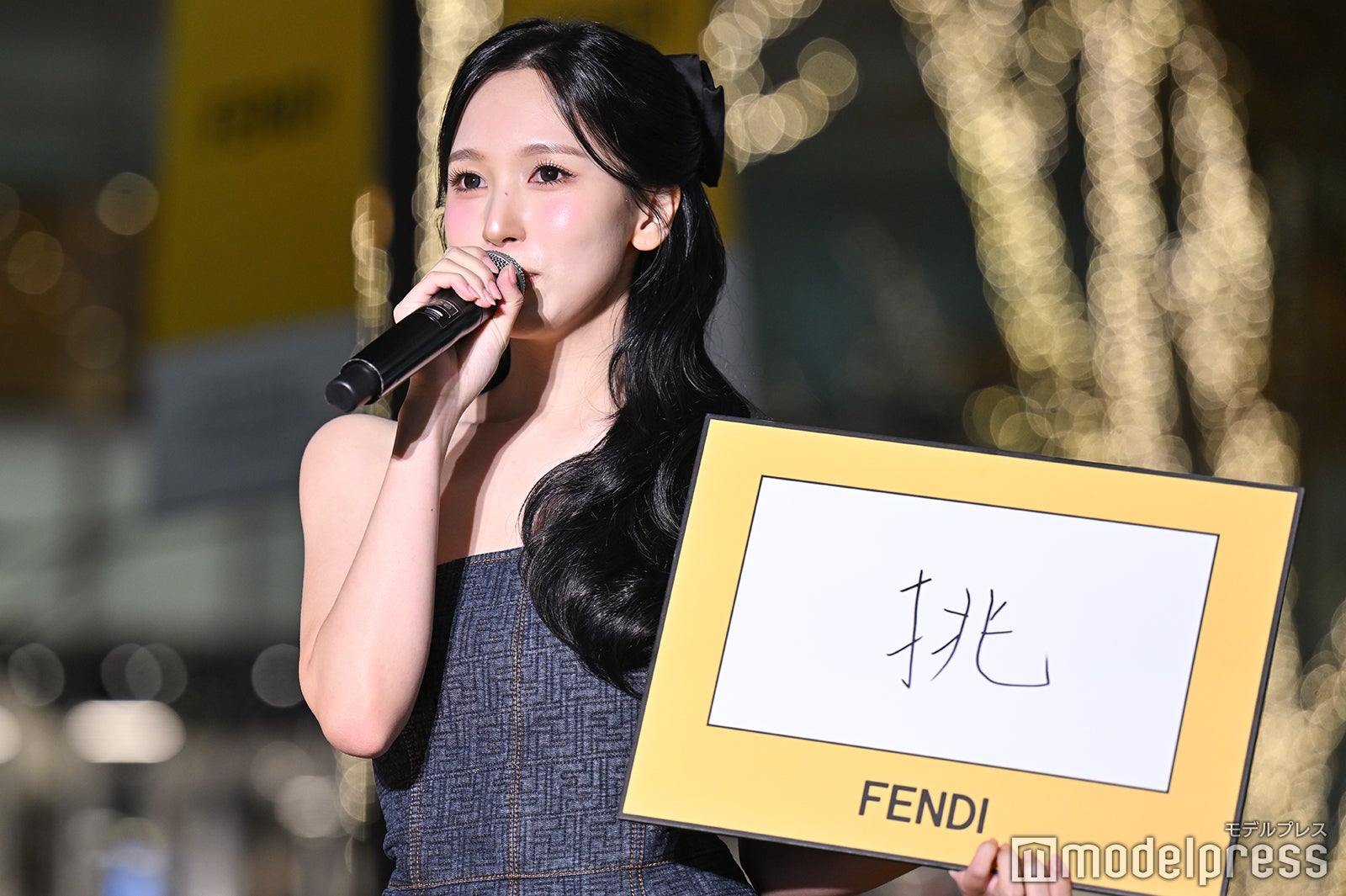 また、2025年を漢字1文字で表現するようリクエストされると“挑”と答え「私たちTWICEはデビューして10年になるんですが、それでも今年、私は水中撮影に挑戦させていただいたり、ロラパルーザでのヘッドライナーとか、ワールドツアーでは360°という新しいステージに挑戦して、今ワールドツアーを回っているので、今年は挑戦することが多かった年だなと思い、この字を選ばせていただきました」と説明した。