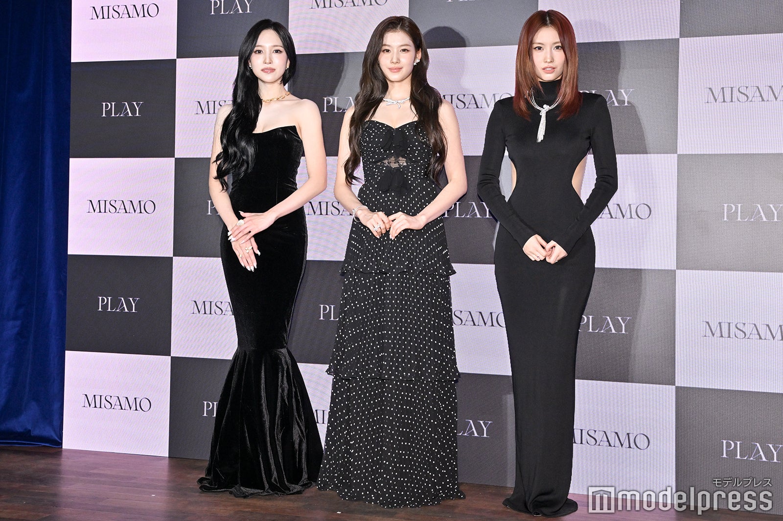MISAMOのJAPAN 1st アルバム『PLAY』発売を記念し、同アルバムの世界観を体感できるポップアップイベントが2月7日〜9日に東京・神宮前のクレインズ6142で開催中。『PLAY』の⾐装展⽰やフォトスポット、ミュージックビデオのセット展⽰、サイン入り台本、物販、そしてMISAMOへ⼿紙を届けることができるポストなどのコンテンツが登場する。『PLAY』を制作するにあたり、どのような思いや考えがあったのか尋ねられると、モモ(MOMO)は「私たちMISAMOの以前のアルバムはかっこよかったり、パワフルな曲が多かったのですが、今回のアルバムは皆さんを元気づけるような、明るい感じのタイトル曲を中心に世界観を表現したアルバムにしてみました」と打ち明け、ミナ(MINA)は「前作に引き続き“芸術”がテーマということで、目で見ても楽しんでいただけるように、たくさんのコンセプトを盛り込んだアルバムになっています。ビジュアル面でも楽しんでいただけたらうれしいです」とアピール。サナ(SANA)は「今作は“演劇”をテーマにしたものになっていて、前作の『HAUTE COUTURE』からは1年ほど時間が空いてしまったのですが、その間にいいものをアルバムに入れられるように準備をたくさん頑張ってきたので、ぜひたくさん聴いてほしいアルバムになっています」と自信をのぞかせた。