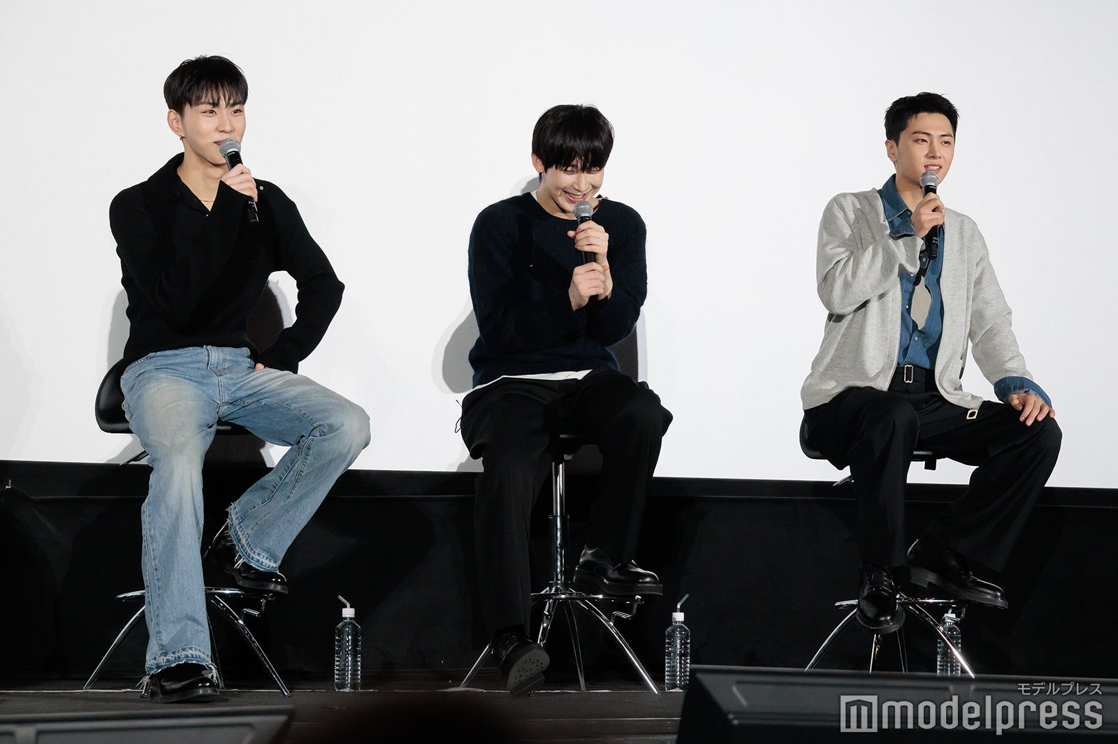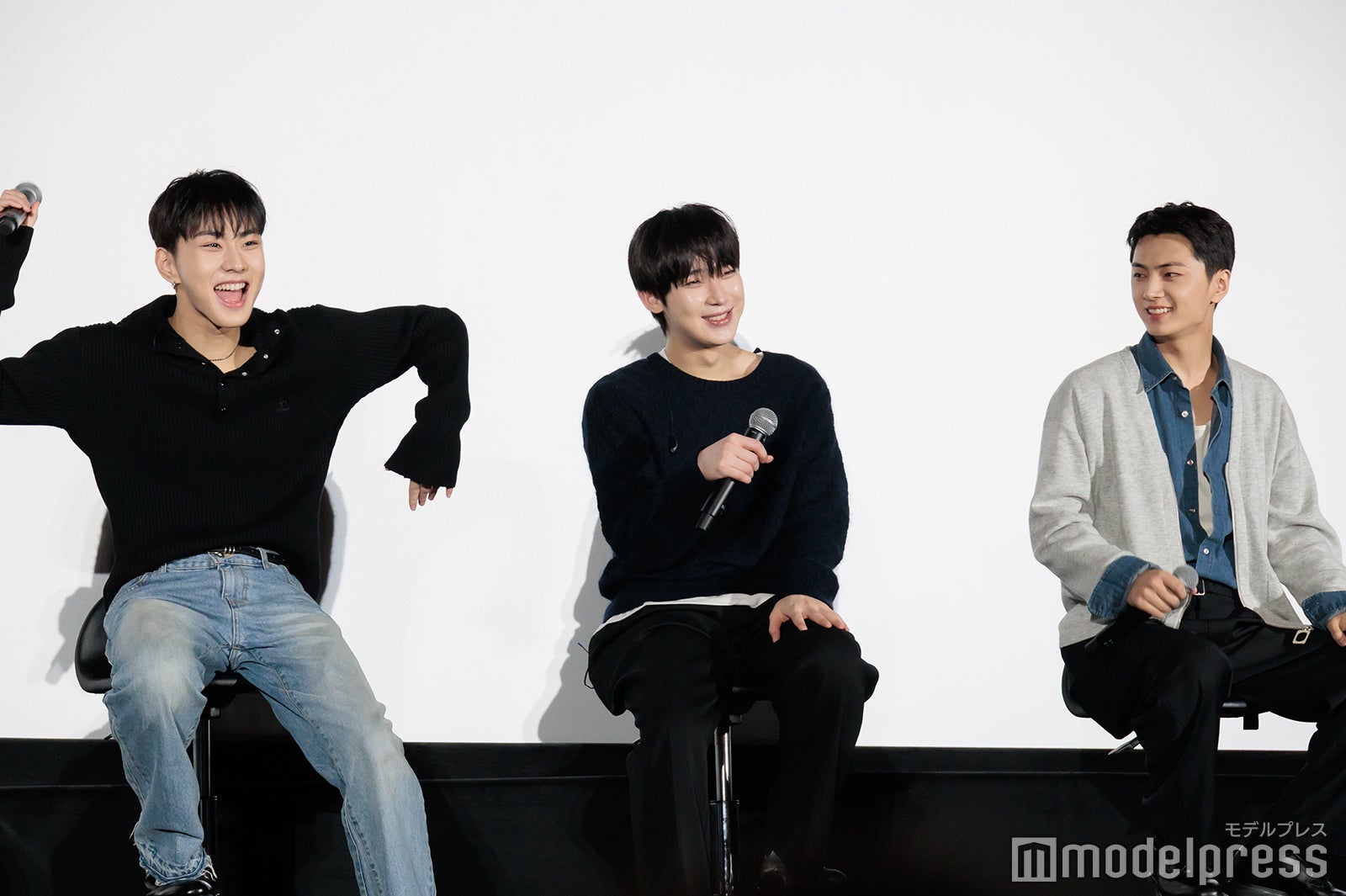鑑賞を終えた感想を聞かれたJUNGWOW(ジョンウォン)は「僕、本当にポップコーンの匂いが大好きなんですが、ここでENGENEの皆さんと一緒に見られて本当に幸せ。久しぶりにENGENEの皆さんも近くで見ることができて、とても幸せな気分」とコメント。また、SUNOO(ソヌ)は「ENGENEの皆さんが声を出したり歓声を上げたりすると思っていたんですが、本当に静かに皆さん見ていただいて」と笑いを誘いつつ、「とてもエチケットが素晴らしいなと思いました」と日本にいるENGENEを称賛した。