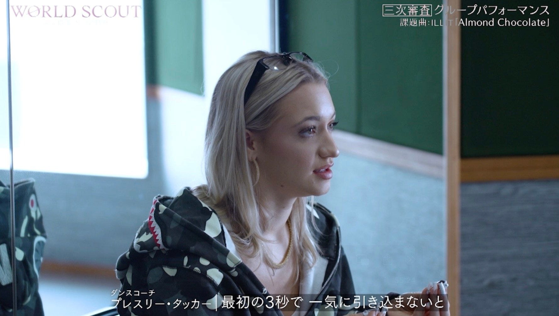 指導に当たるのはレディ・ガガとの共演やHYBE × GeffenのKATSEYEの振付にも携わるアメリカで大注目のトップダンサー、プレスリー・タッカー氏。プレスリーは、4人のダンスをチェックすると険しい表情で「今の感じだと、ちょっと動きがソフトすぎるかな。可愛いいんだけど、もっと良くできるはず」と切り出す。「つまらないものにはしたくないの。なぜなら、最初の3秒で一気に引き込まないと」「本を読む時、始まりが退屈な本なんて読みたくないでしょ。それと同じでガシッと掴みたいの、最初の3秒間で」とプロの心得を説いた。