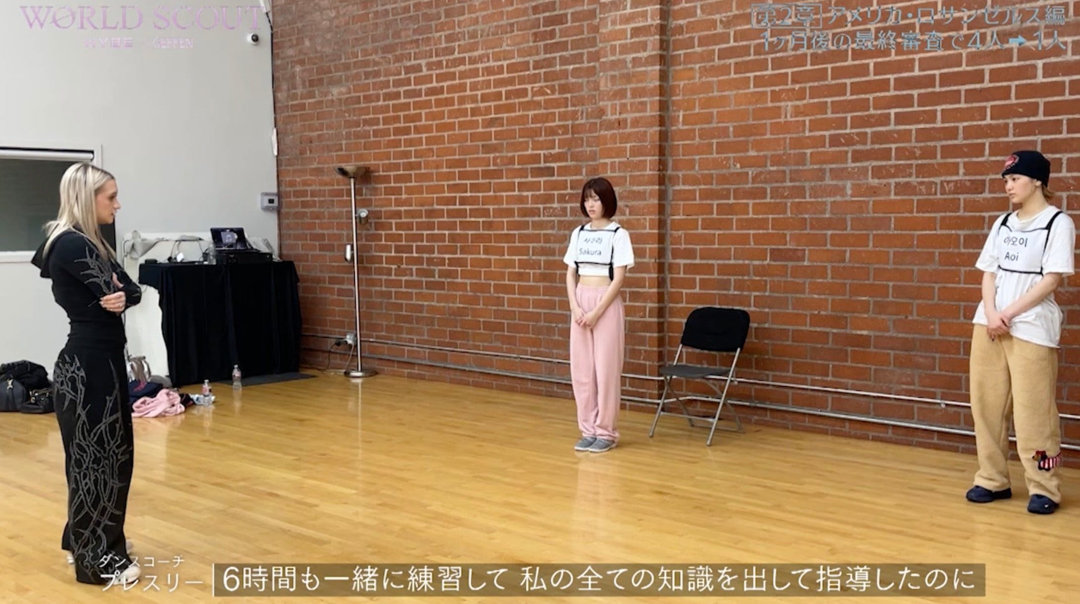 『WORLD SCOUT: THE FINAL PIECE』は、HYBEとGeffen Recordsがタッグを組み、2026年のデビューを見据え、日本から世界へ羽ばたく"たった1人のアーティスト"を発掘するスカウトプロジェクト。いよいよ第6話からは第2章となるアメリカ・ロサンゼルス編が幕を開ける。アメリカ行きを決めたのはHIORI(津波古妃織・18歳)、AYANA(桑原彩菜・18歳)、AOI(大谷碧空・19歳)、SAKURA(飛咲来・15歳)の4名だ。