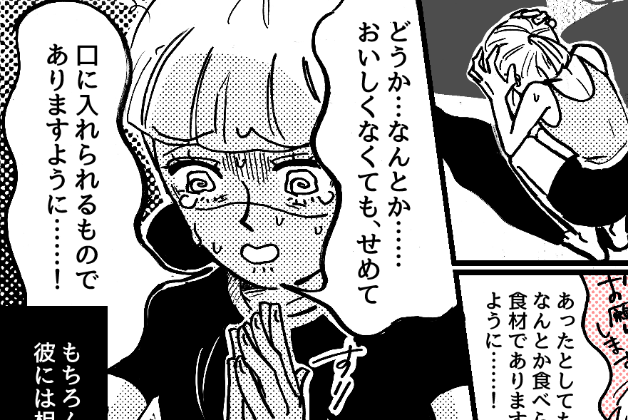 私はシオン(26)。物心がついた頃からひどい偏食でした。親や親戚はもちろん、友人や上司にも毎回注意され、呆れられ、ついには元カレにも偏食が原因でふられてしまいます。私も偏食をなくそうと努力はしたのですが、もどしてしまったりしてどうしても食べられないの…