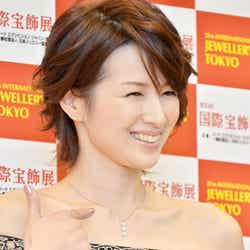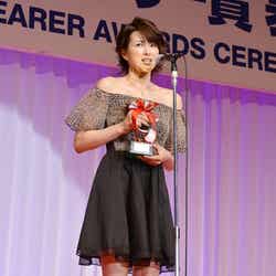 今回の受賞に、「復帰後このようなすばらしい賞をいただきまして、感謝しております」と感激。「最近は、子育てに追われておりまして、ジュエリーをつけることも難しくなっております。ですが、授かる前に子どもとお揃いで購入したジュエリーを、私は付けておりました。そして今日、子どもに付けてきました」と嬉しそうな表情で語った。また、輝くための秘訣を聞かれる場面では産後ダイエットについて触れ、「食べることが大好きなので、ジュエリーが似合うような体型に戻るようにと(頑張った)」とコメント。「以前よりほっそりしたのでは?」と問われると、「子どもをだっこするから締まったのかも。嬉しいです」と喜んだ。