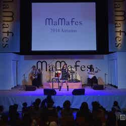 6日、都内にて行なわれた「mama fes 2014 Autumn」に登場したhitomi。黒とシルバーのボーダーチュニックを着こなし、妊娠8ヶ月目のふっくらとしたお腹と変わらぬ美脚を披露。スペシャルライブとともにトークを繰り広げた。